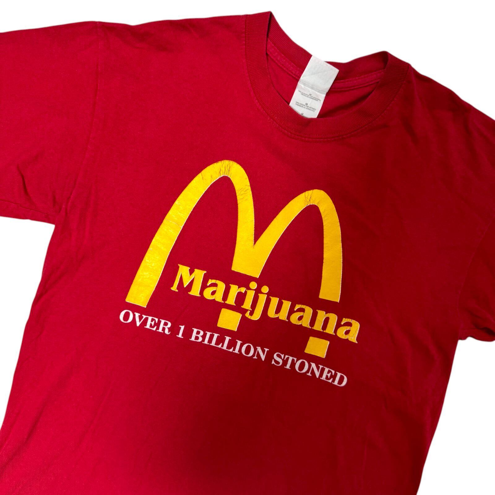 ヘンプ系Tシャツ ローカル MarijuanaTシャツ パロディT マリファナ 大麻ジョーク マクドナルド風 風刺Tシャツ アメリカンジョーク サブカルT アートTシャツ ストーナー