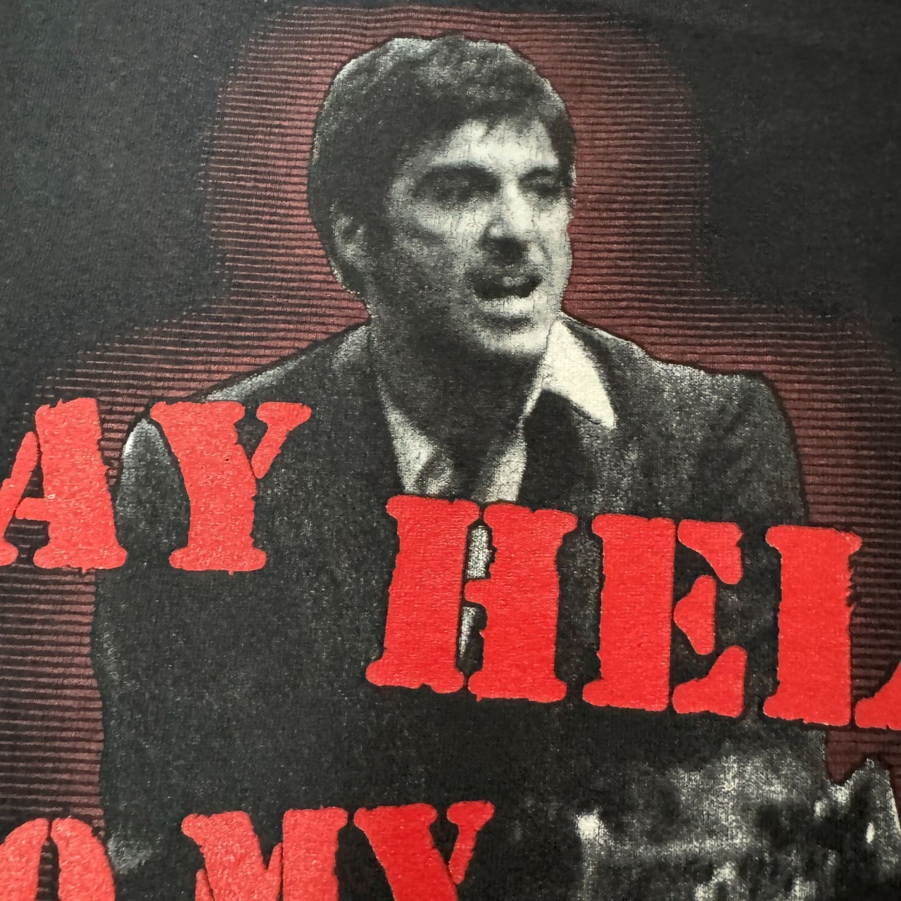 scarface tシャツ スカーフェイス ムービーt 映画t アルパチーノ トニーモンタナ 80s 90s y2k ヴィンテージ 映画グッズ 古着 usa製 ガンアクション ギャング 映画キャラ ビッグプリント 黒t アメカジ ストリート ストリートファッション ヒップホップ b系 oldschool オーバーサイズ メンズtシャツ ユニセックス リルフレンド ハリウッド 映画tシャツ 名セリフ マフィア ビンテージ風 古着tシャツ ムービーグッズ セリフt 1983年 cultmovie ブラックtシャツ ファッション 映画ファン ストリートブランド アクション映画 80年代tシャツ シネマt popカルチャー ミリタリー風 プリントtシャツ usムービー スカーフェイスtシツ マシンガンt NYカルチャー スカーフェイスグッズ