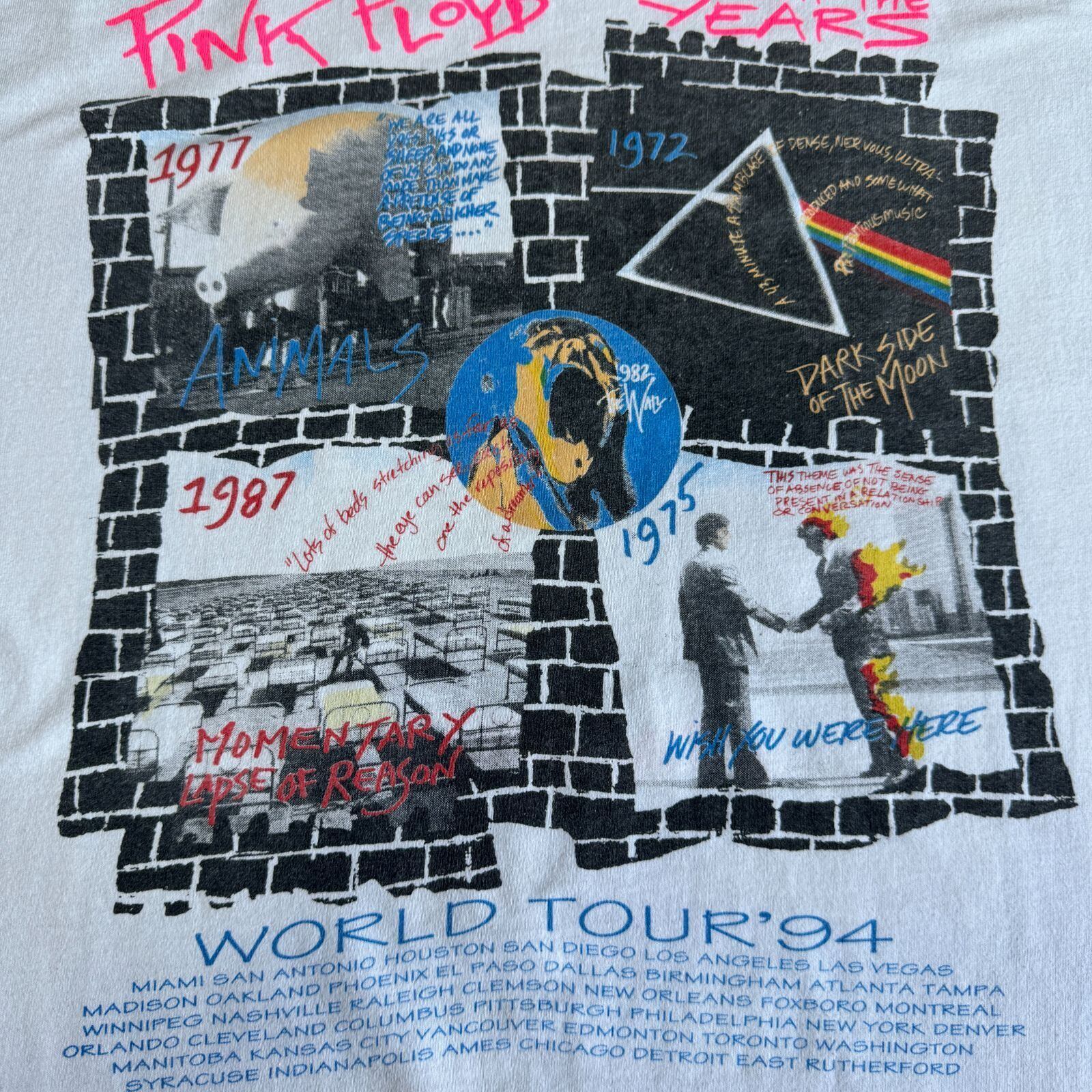 ピンクフロイドのツアーTシャツ。フロントは有名なグラフィックですが、バックプリントに複数のアルバムアートワークが入る豪華仕様。
