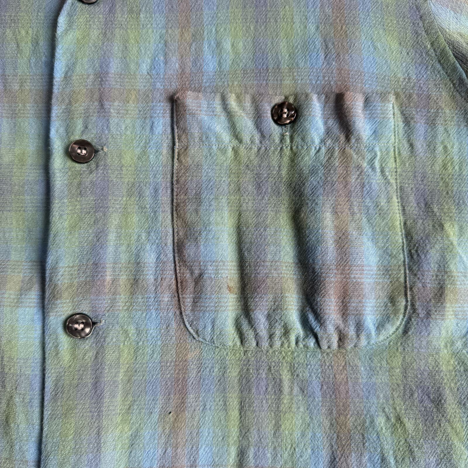 50s Sir Pendleton ペンドルトン ボードシャツ BoardShirt Lサイズ オンブレチェック グリーン ブルー グレー レア Vintage ヴィンテージ オープンカラー 開襟 50年代 ウールシャツ