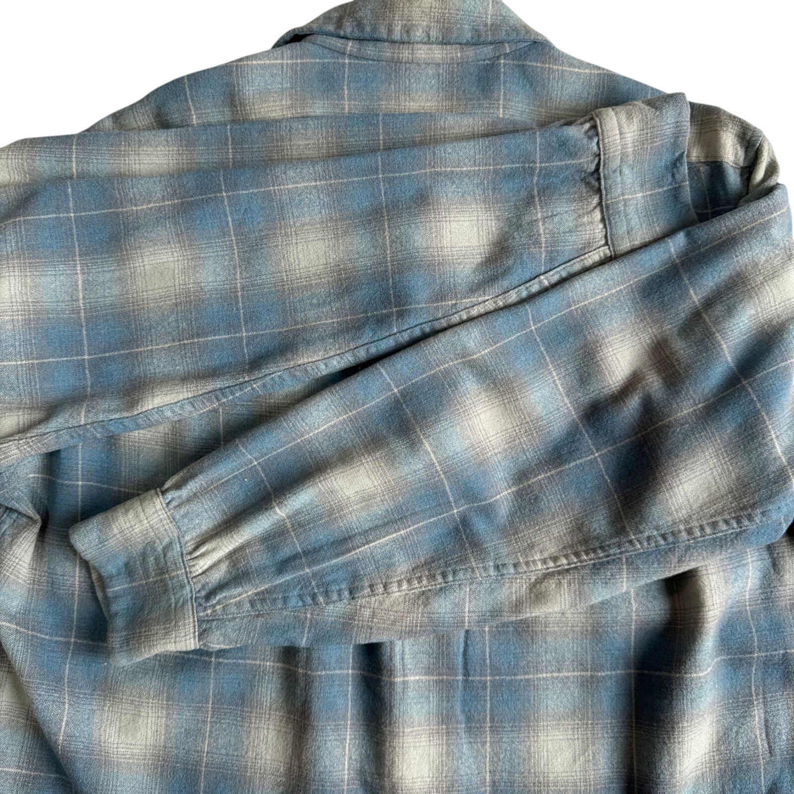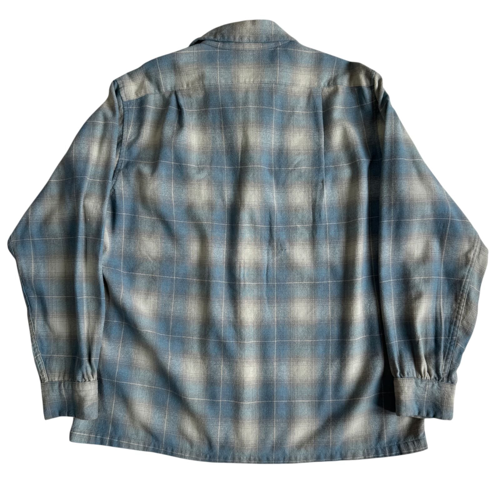 70s Pendleton ペンドルトン ボードシャツ BoardShirt Lサイズ オンブレチェック ブルー グレー シャドーチェック Vintage ヴィンテージ オープンカラー 開襟 60年代 70年代 ウールシャツ