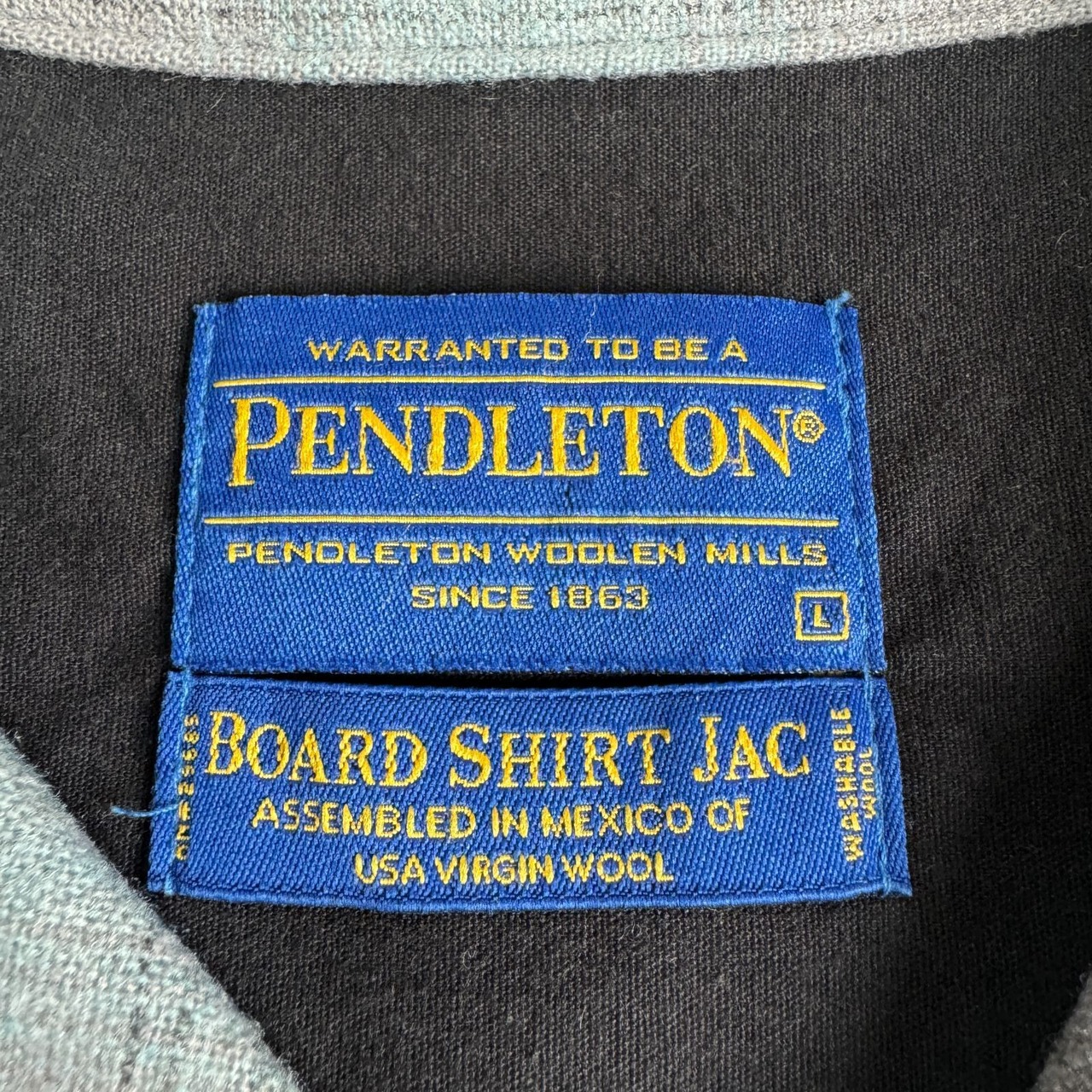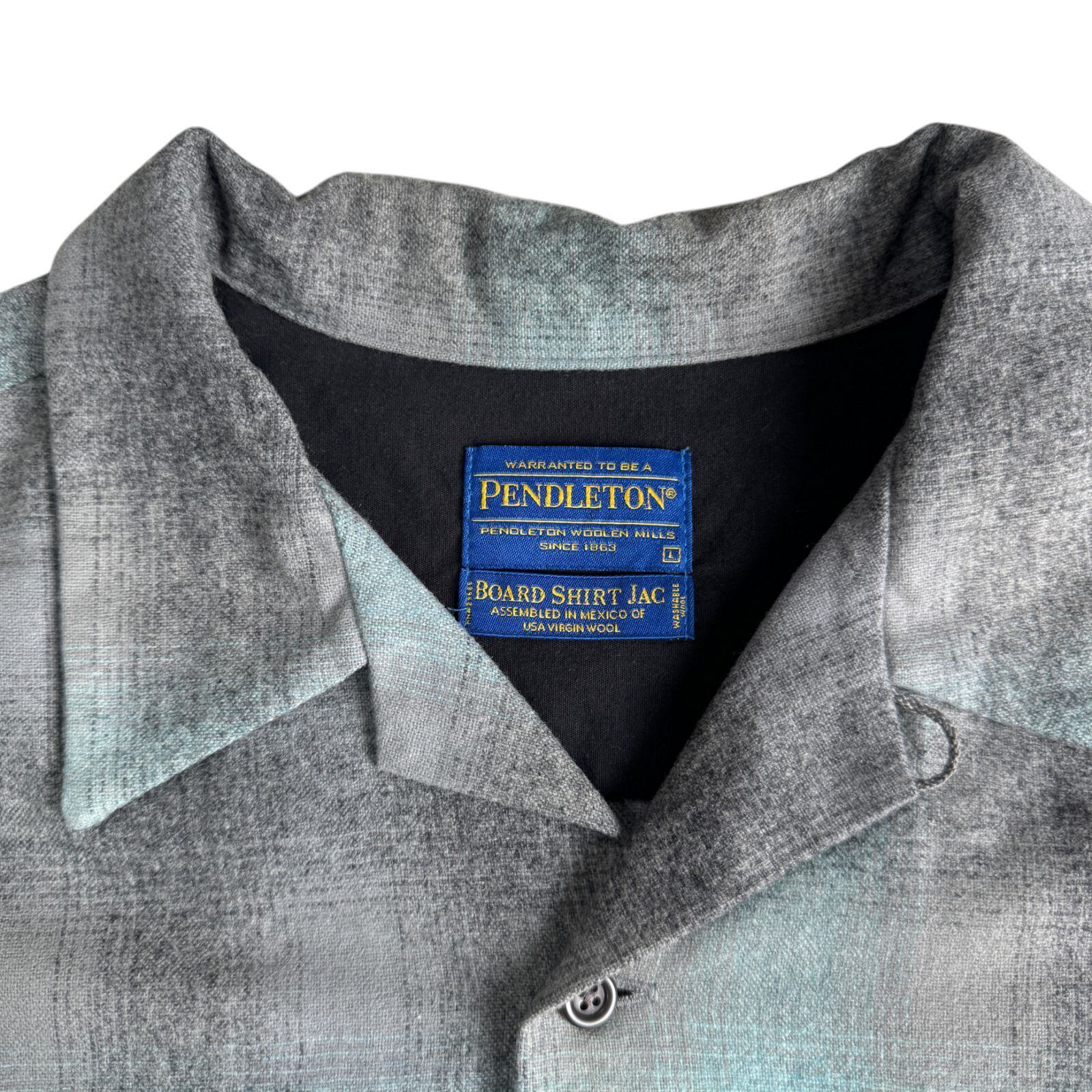 00s Pendleton ペンドルトン ボードシャツ BoardShirt Lサイズ ブルー グレー ターコイズ シャドーチェック Vintage ヴィンテージ オープンカラー 開襟 60年代 70年代 ウールシャツ
