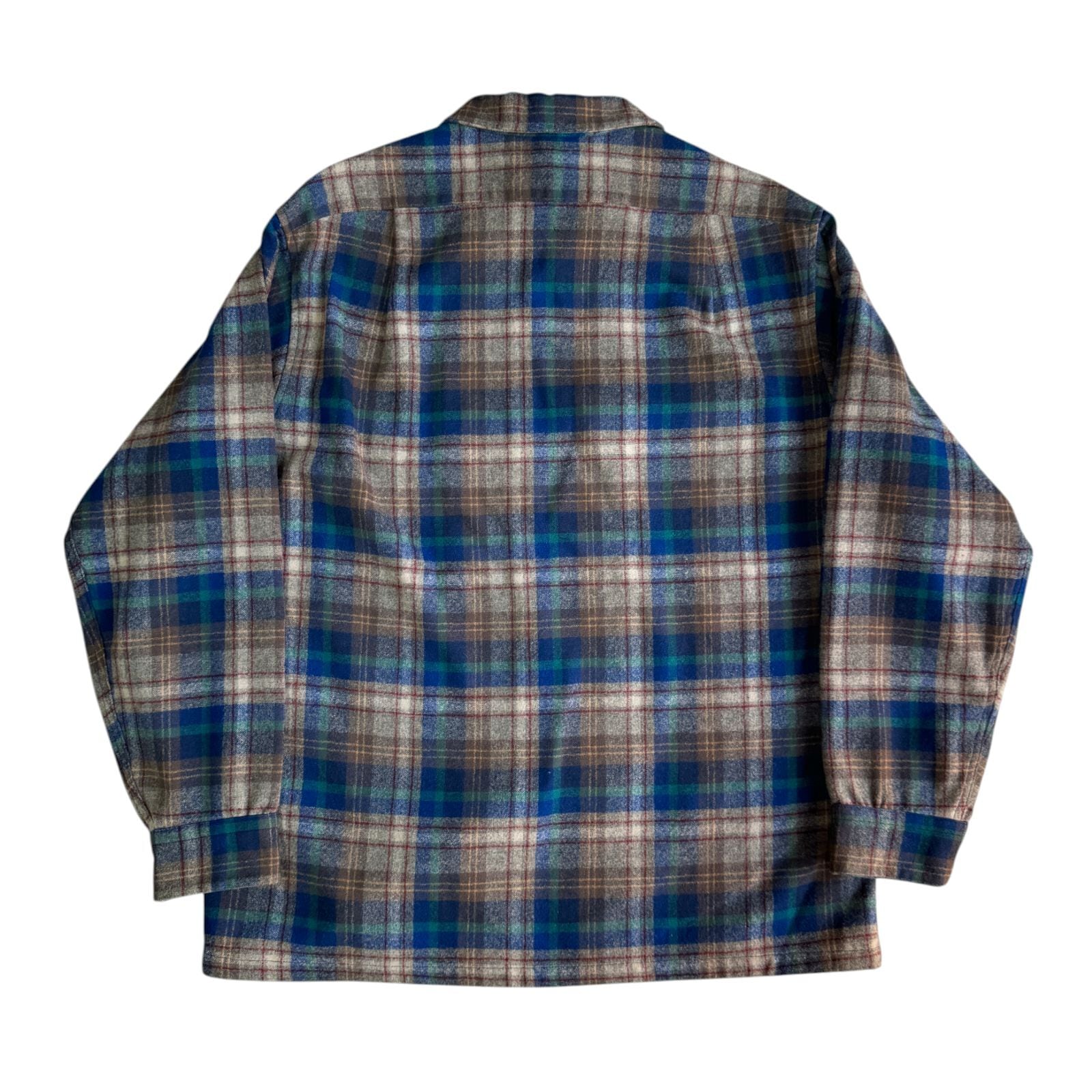 ペンドルトンウール グランジ vintage wool shirt pendleton board shirt made in usa woolen mills surf style ombre plaid gray aqua クラシックチェック 開襟シャツ