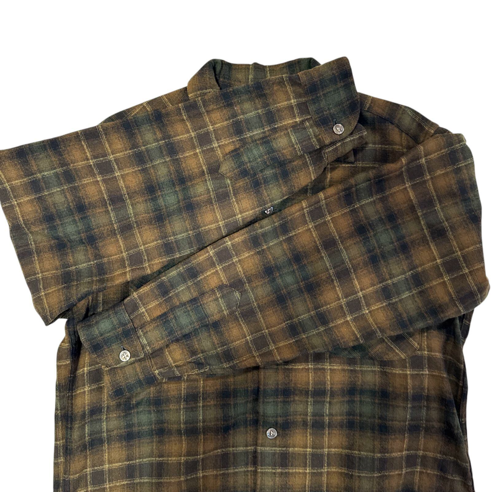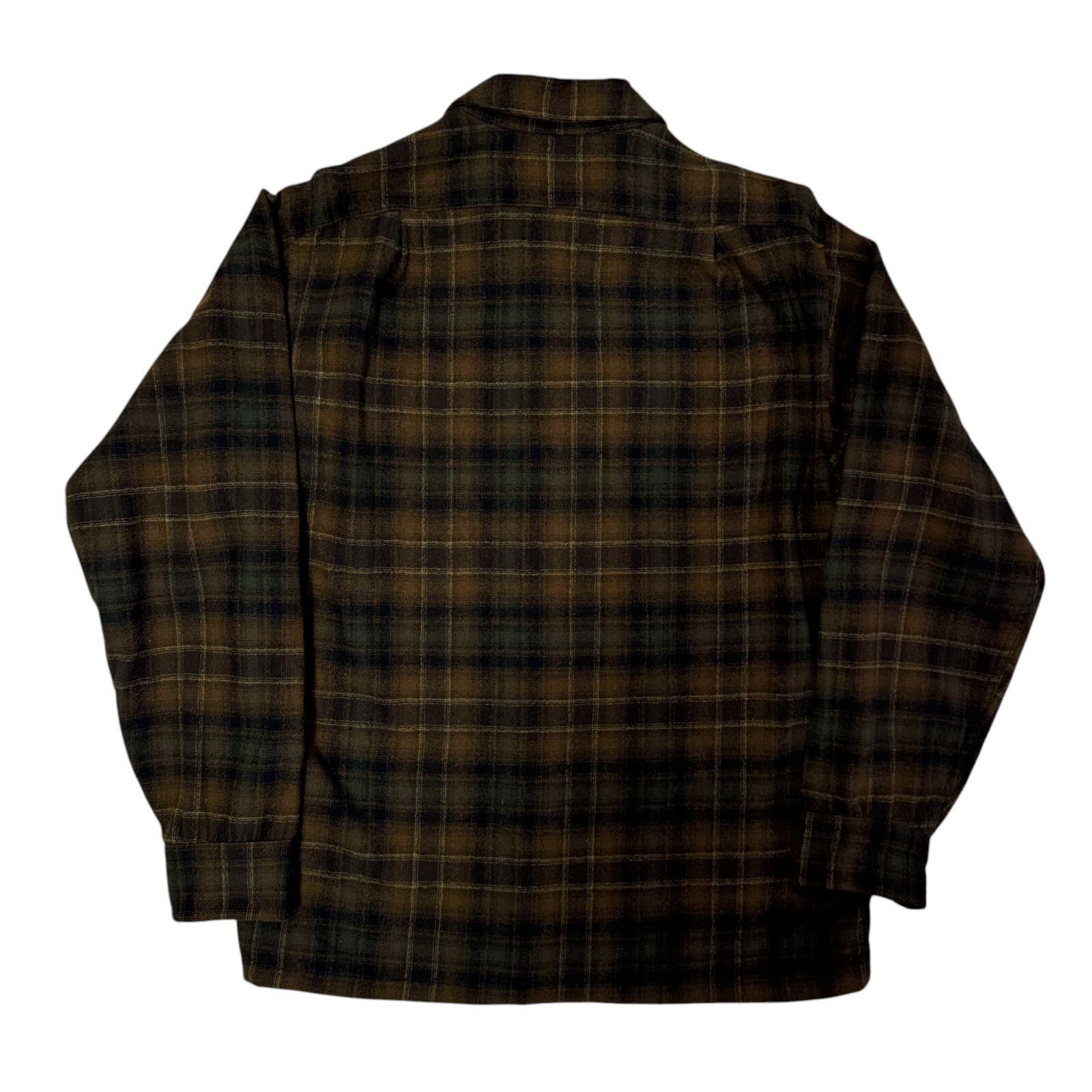 60s Pendleton ペンドルトン ボードシャツ BoardShirt Mサイズ ブラウン グリーン オンブレ シャドーチェック 高配色 Vintage ヴィンテージ オープンカラー 開襟 70年代 60年代 ウールシャツ