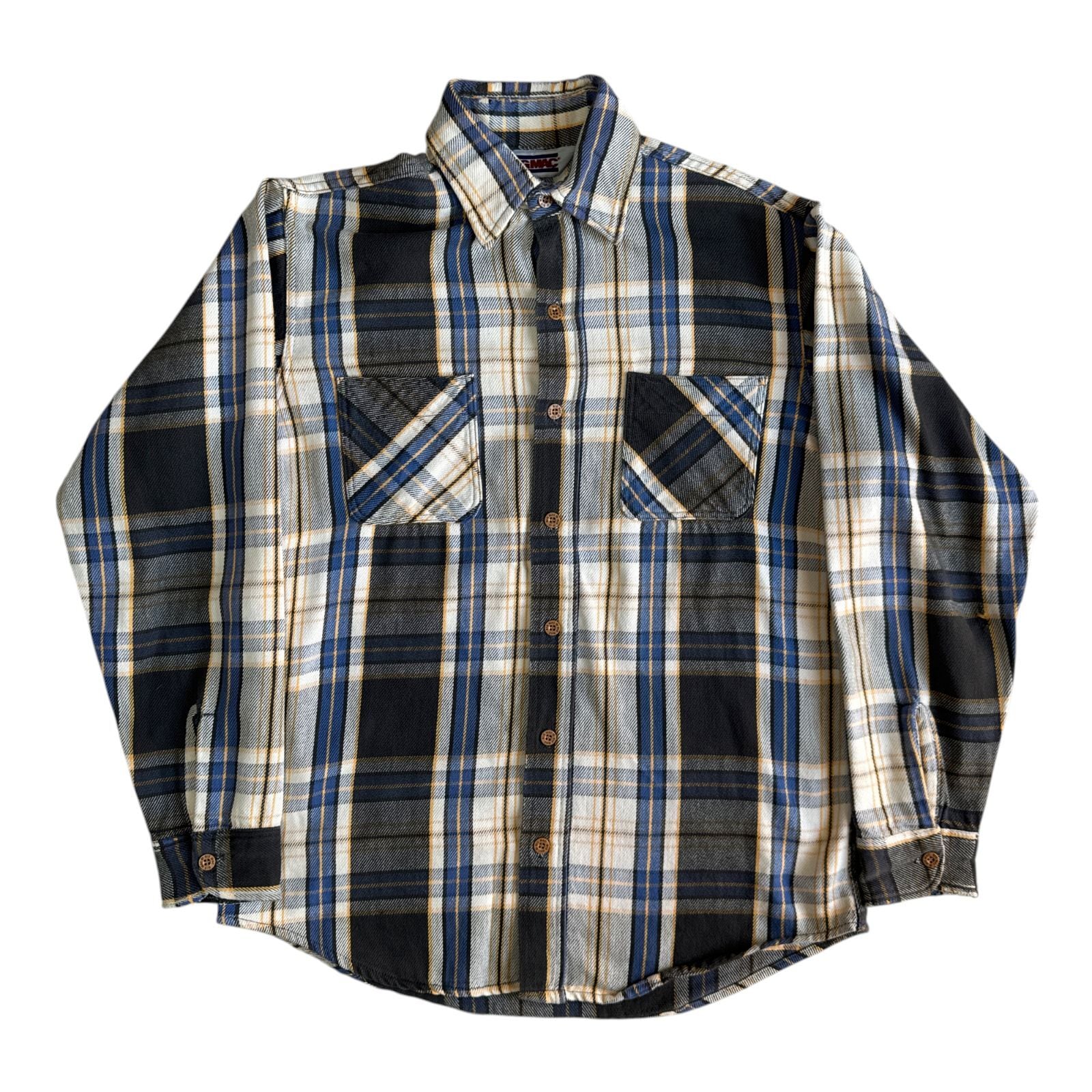 80s BIG MAC ヘビーネルシャツ Mサイズ ブルー ブラック ホワイト クラシックチェック フランネル ヘビネル オンブレチェック ビッグマック Vintage ヴィンテージ ビンテージ 三角タグ