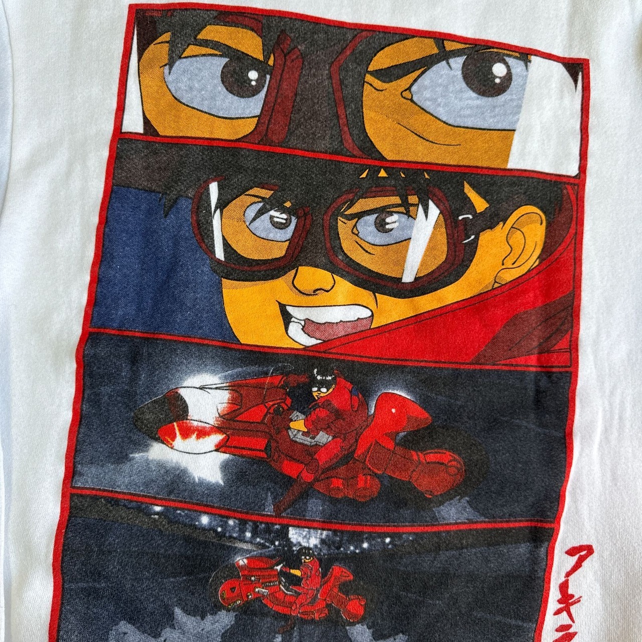 フロントに金田とバイク、バックプリントにコマ割りされたアニメシーンのプリントが豪華仕様。