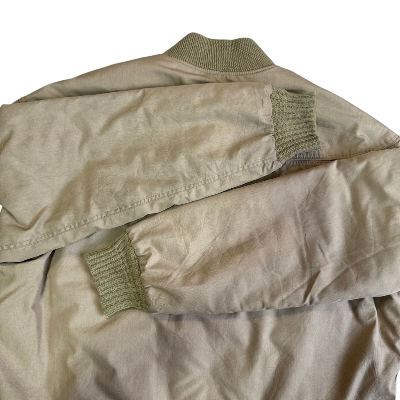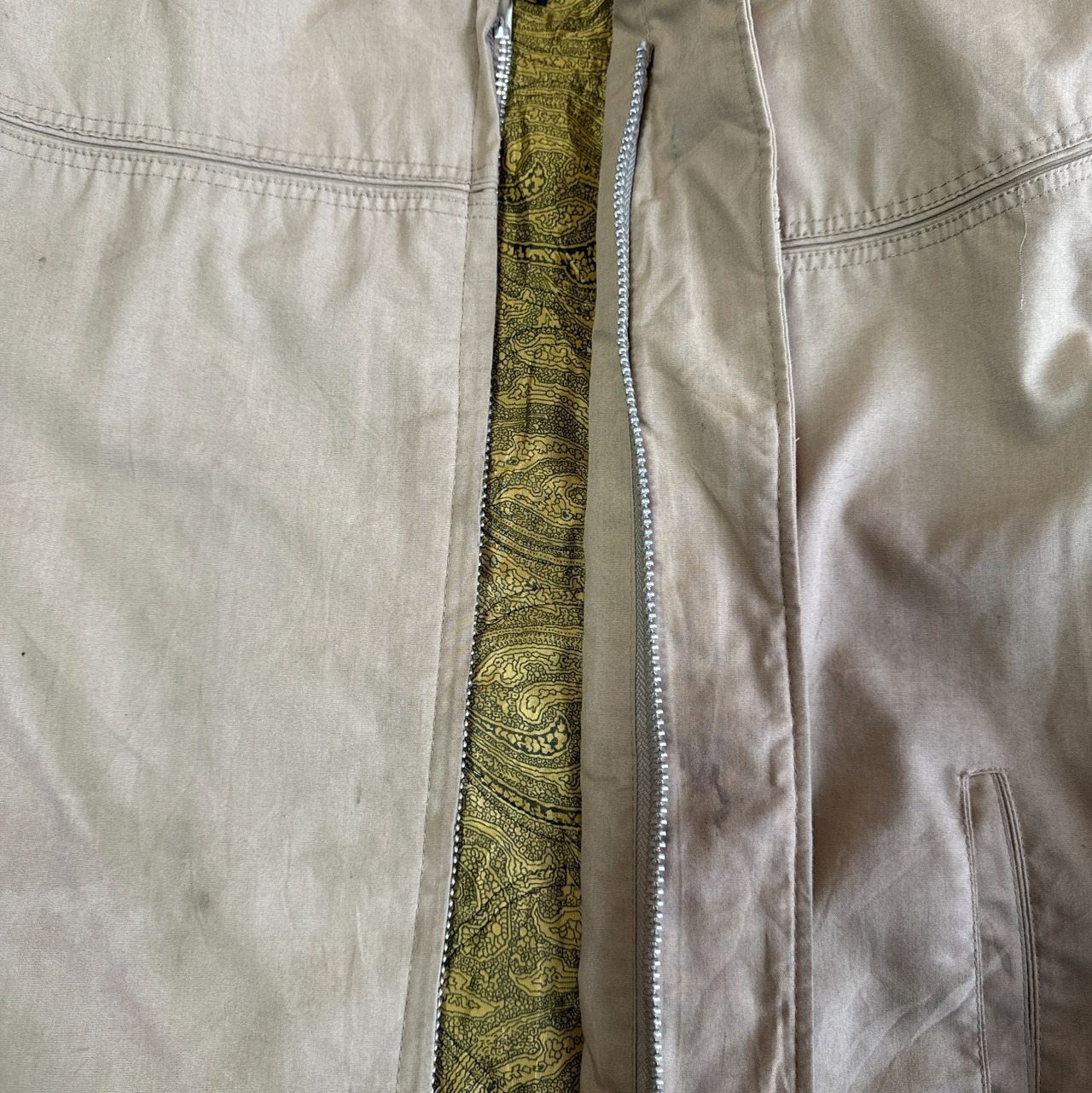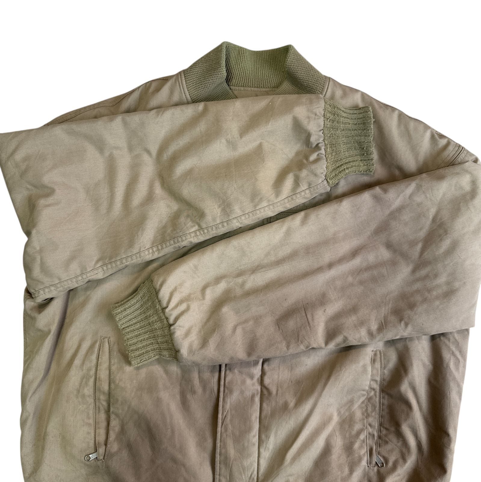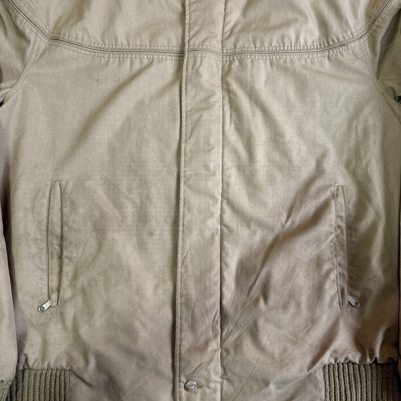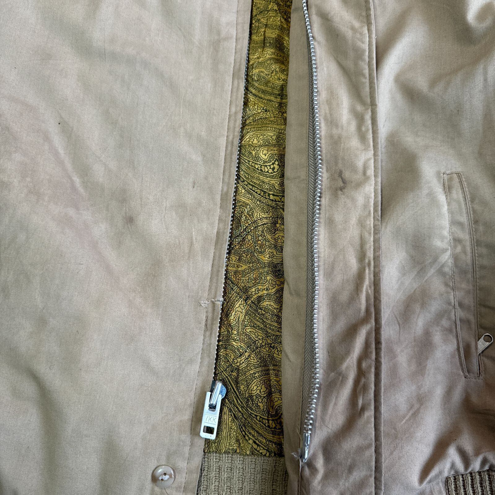 薄汚れやオイル汚れのようなものなど、ジャンクな個体。裏地にも敗れはあったりしますが、ボロの雰囲気がかっこいい。USAタグは辛うじて現存しているため、70年代の個体と思われます。アルミジップだったりと拘りたい方へ。