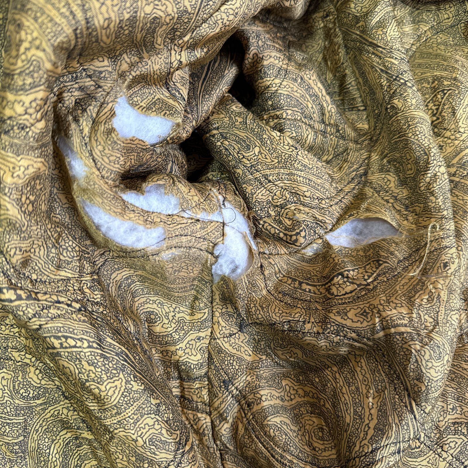 使用感や全体的に薄汚れがございます。裏地に破れがございます。現状は中綿が飛び出る等の不具合は感じません。