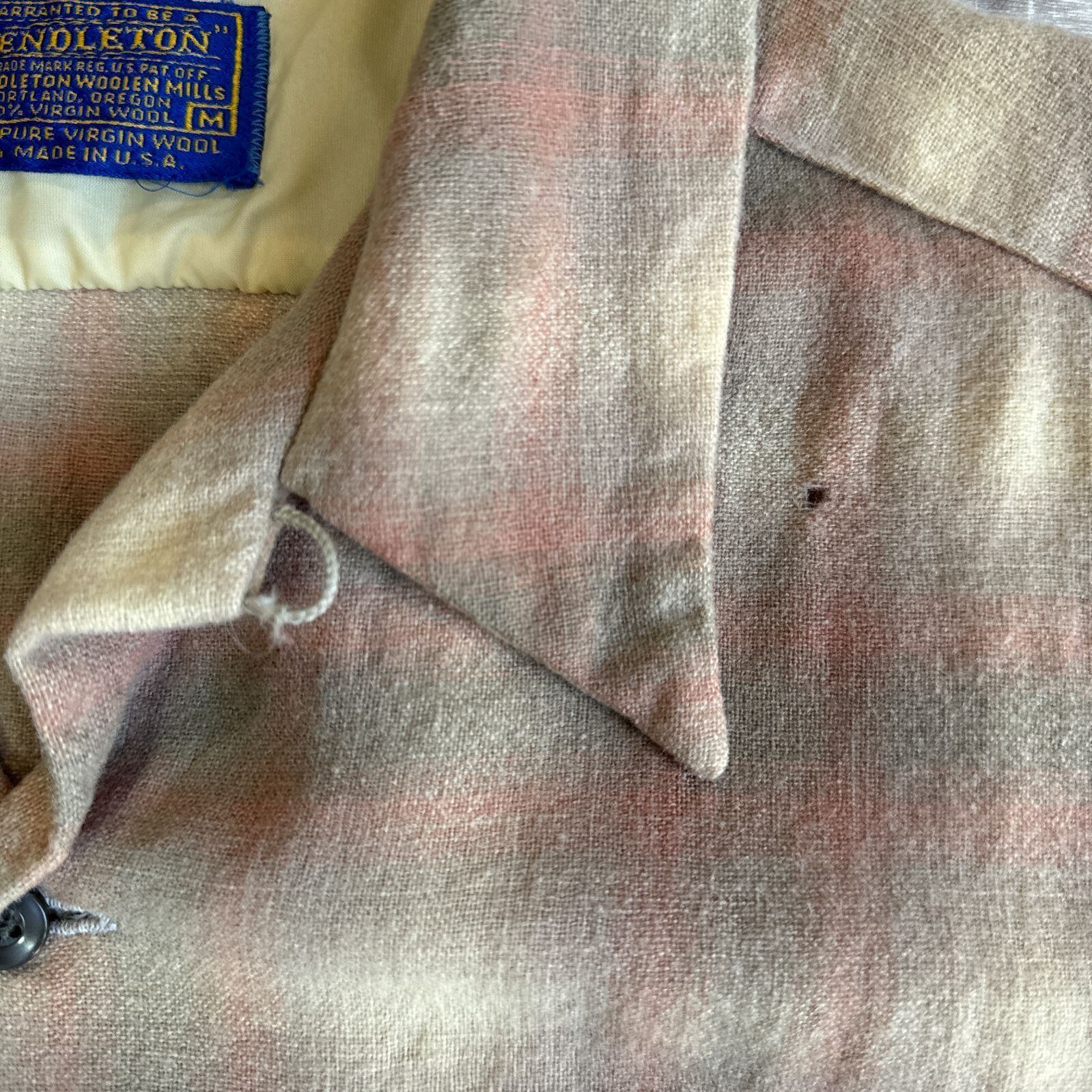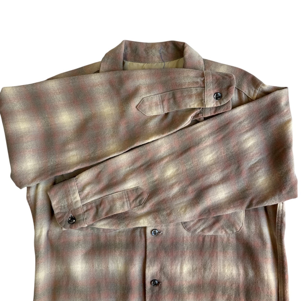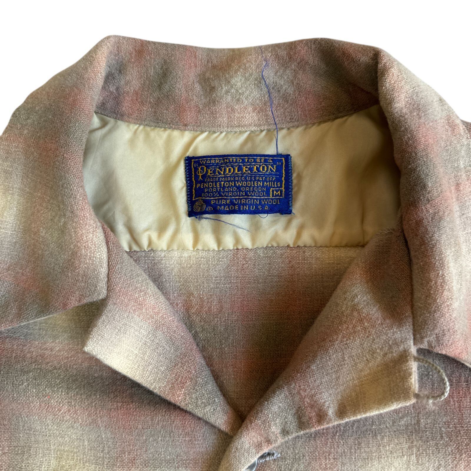 70s Pendleton ペンドルトン ボードシャツ BoardShirt Mサイズ グレー ピンク ベージュ オンブレ シャドーチェック 高配色 Vintage ヴィンテージ オープンカラー 開襟 70年代 60年代 ウールシャツ