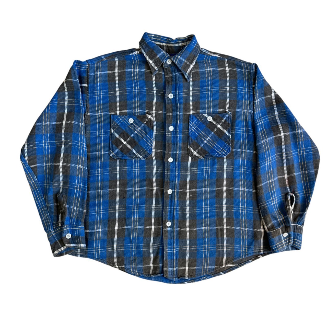 60s Unknown Winter King ヘビーネルシャツ Lサイズ ブルー グレー オンブレチェック フランネル ヘビネル オンブレチェック ウィンターキング ビッグマック Vintage ヴィンテージ ビンテージ