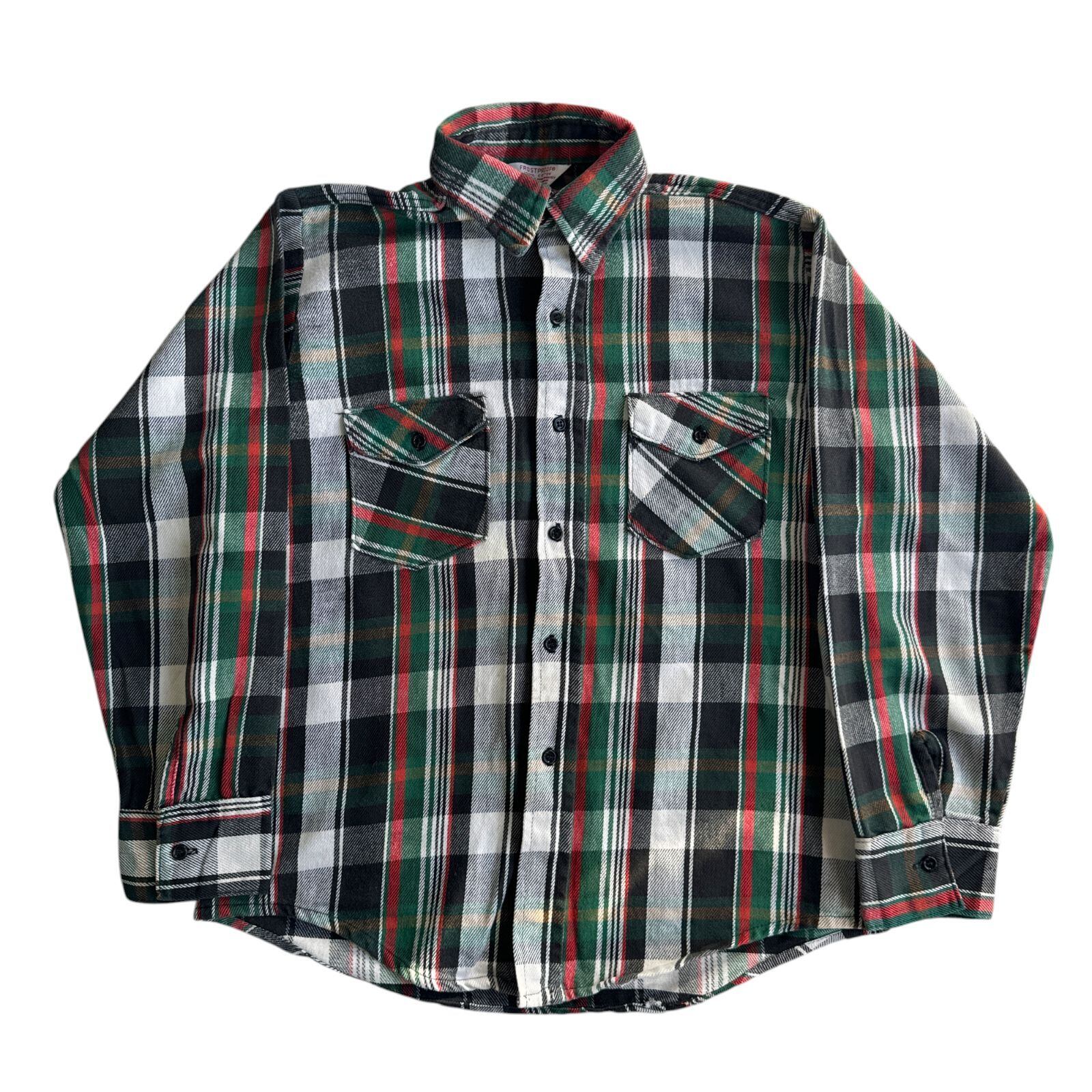 80s FROSTPROOF ヘビーネルシャツ 白黒 マルチカラー チェック Lサイズ フロストプルーフ チェックシャツ フランネル ヘビネル オンブレチェック Vintage ヴィンテージ ビンテージ Flannel Shirt