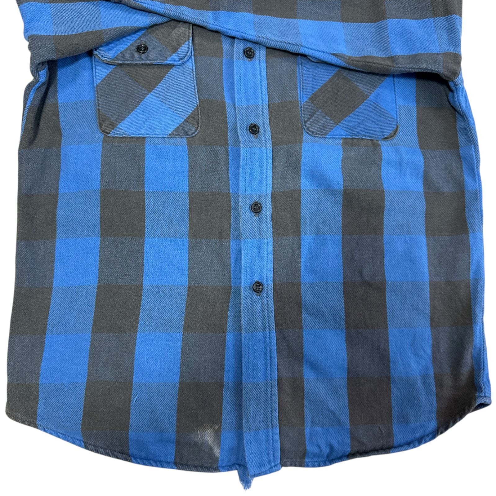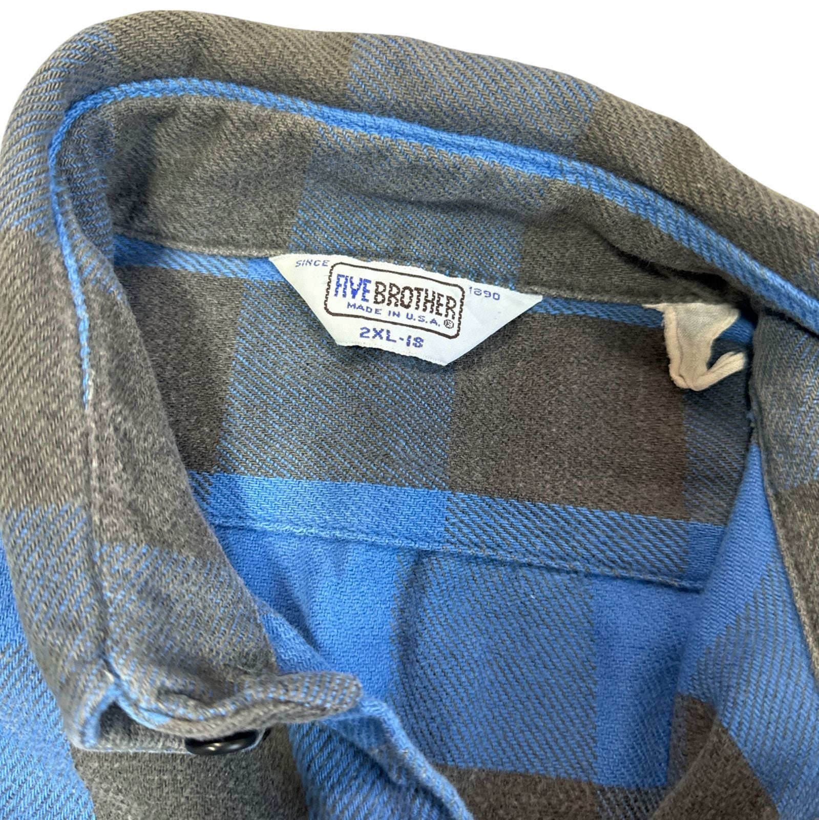 70s - 80s FIVE BROTHER ヘビーネルシャツ 青 黒 ブルー ブロックチェック 2XLサイズ ファイブブラザー チェックシャツ フランネル ヘビネル オンブレチェック Vintage ヴィンテージ ビンテージ Flannel Shirt
