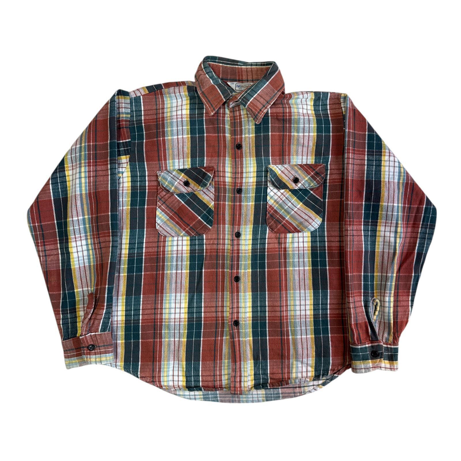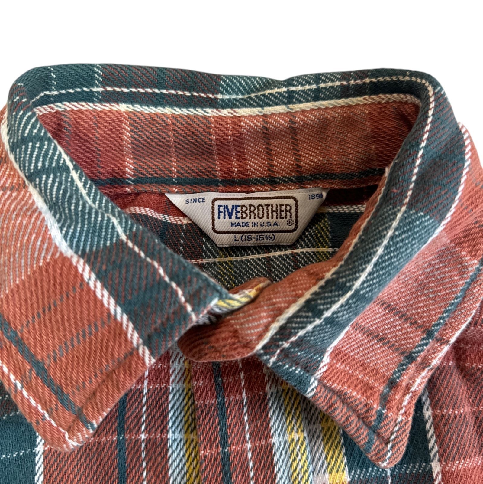 70s - 80s FIVE BROTHER ヘビーネルシャツ マルチカラー チェック レンガ グリーン Lサイズ ファイブブラザー チェックシャツ フランネル ヘビネル オンブレチェック Vintage ヴィンテージ ビンテージ Flannel Shirt