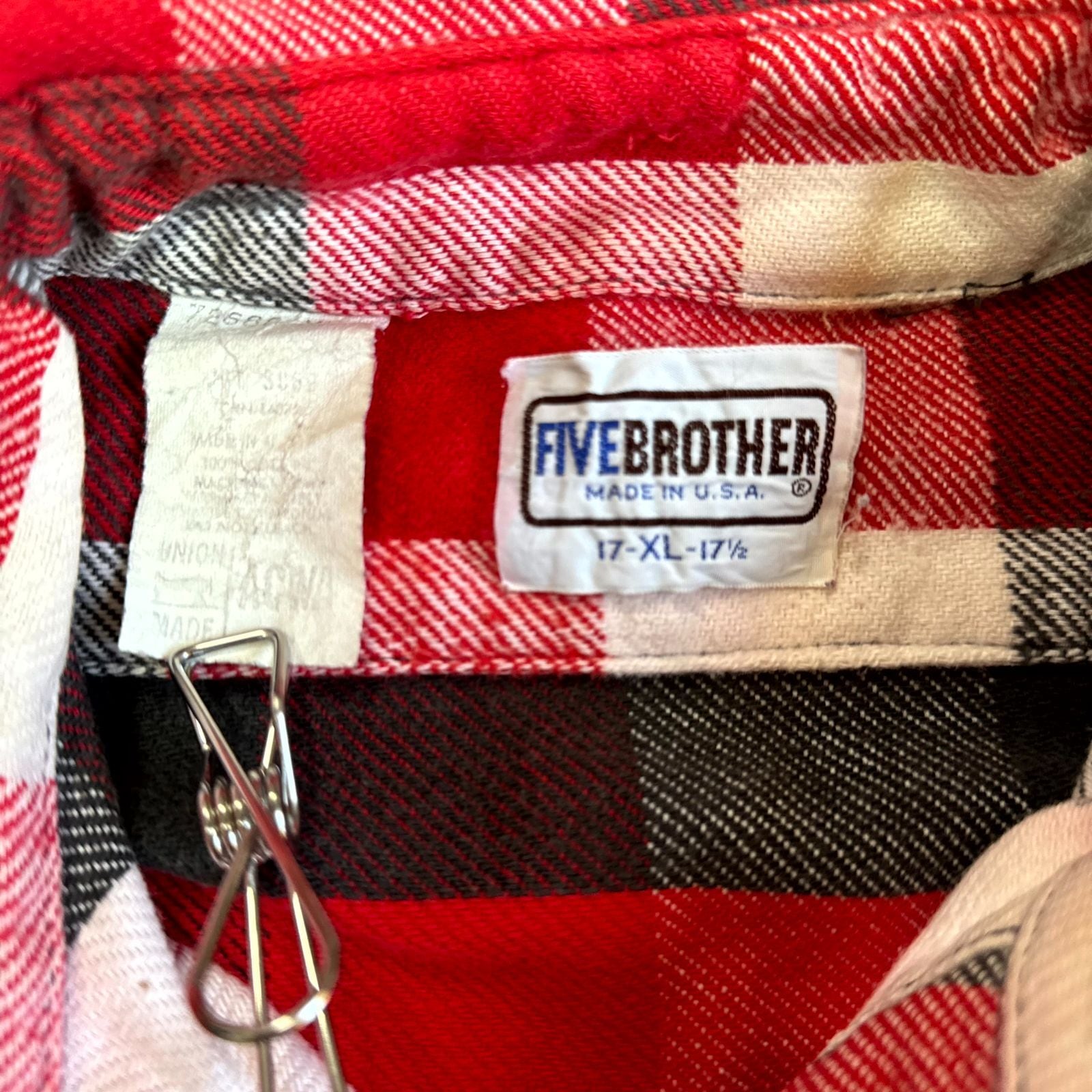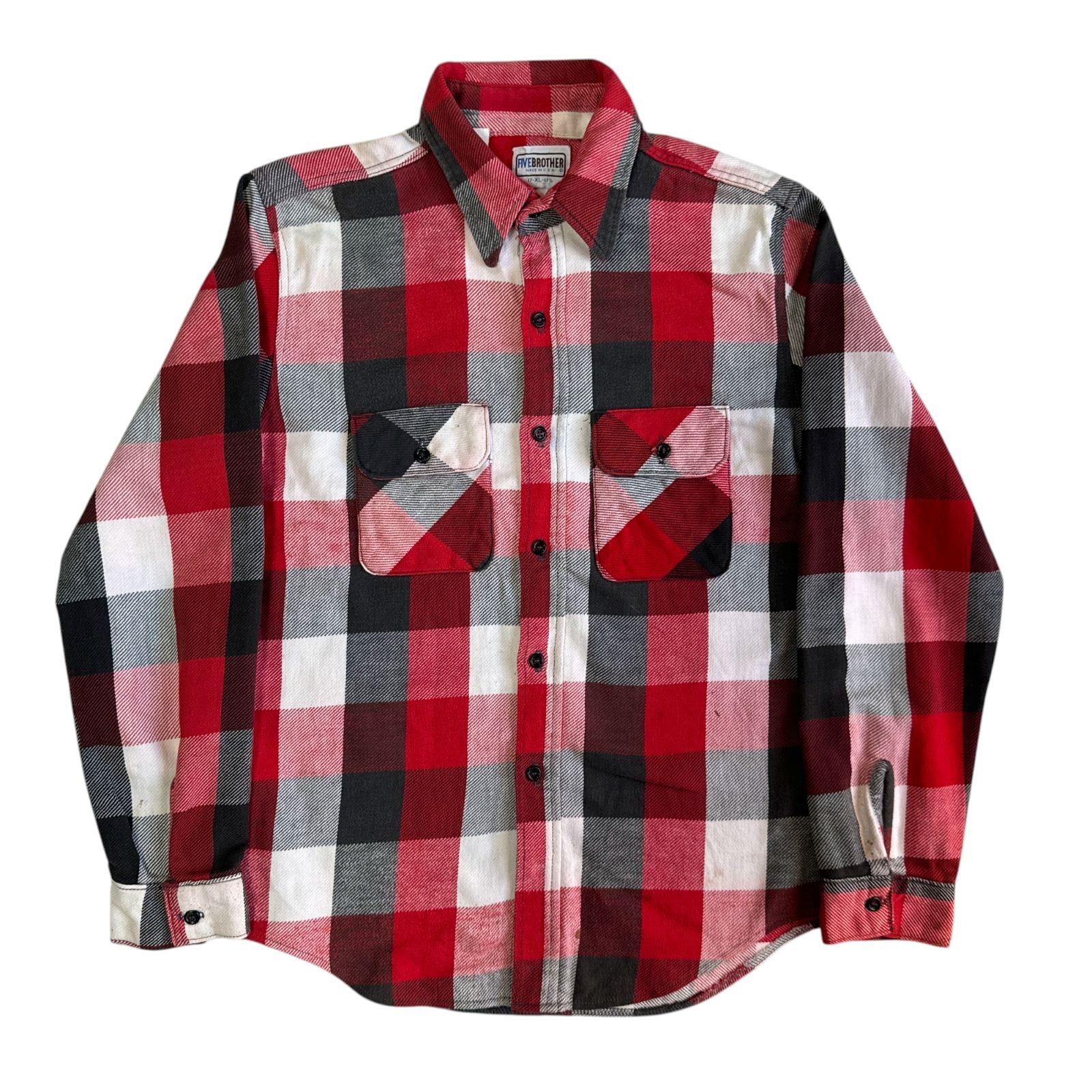 80s FIVE BROTHER ヘビーネルシャツ 赤 白 黒 ブロックチェック XLサイズ ファイブブラザー チェックシャツ フランネル ヘビネル オンブレチェック Vintage ヴィンテージ ビンテージ Flannel Shirt