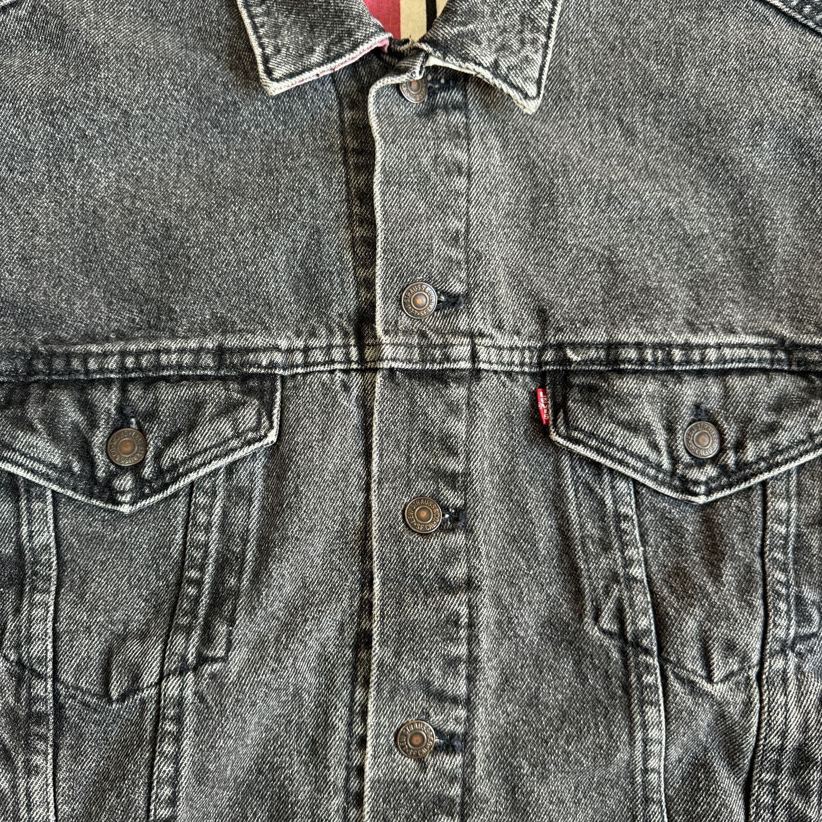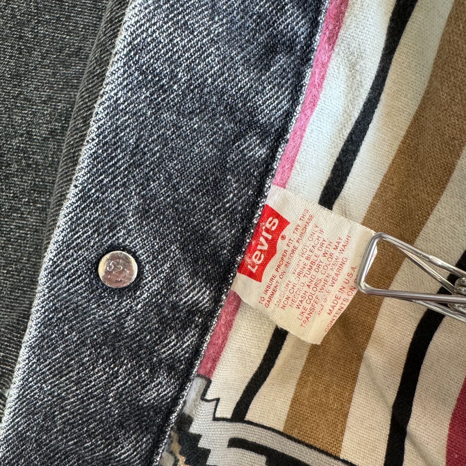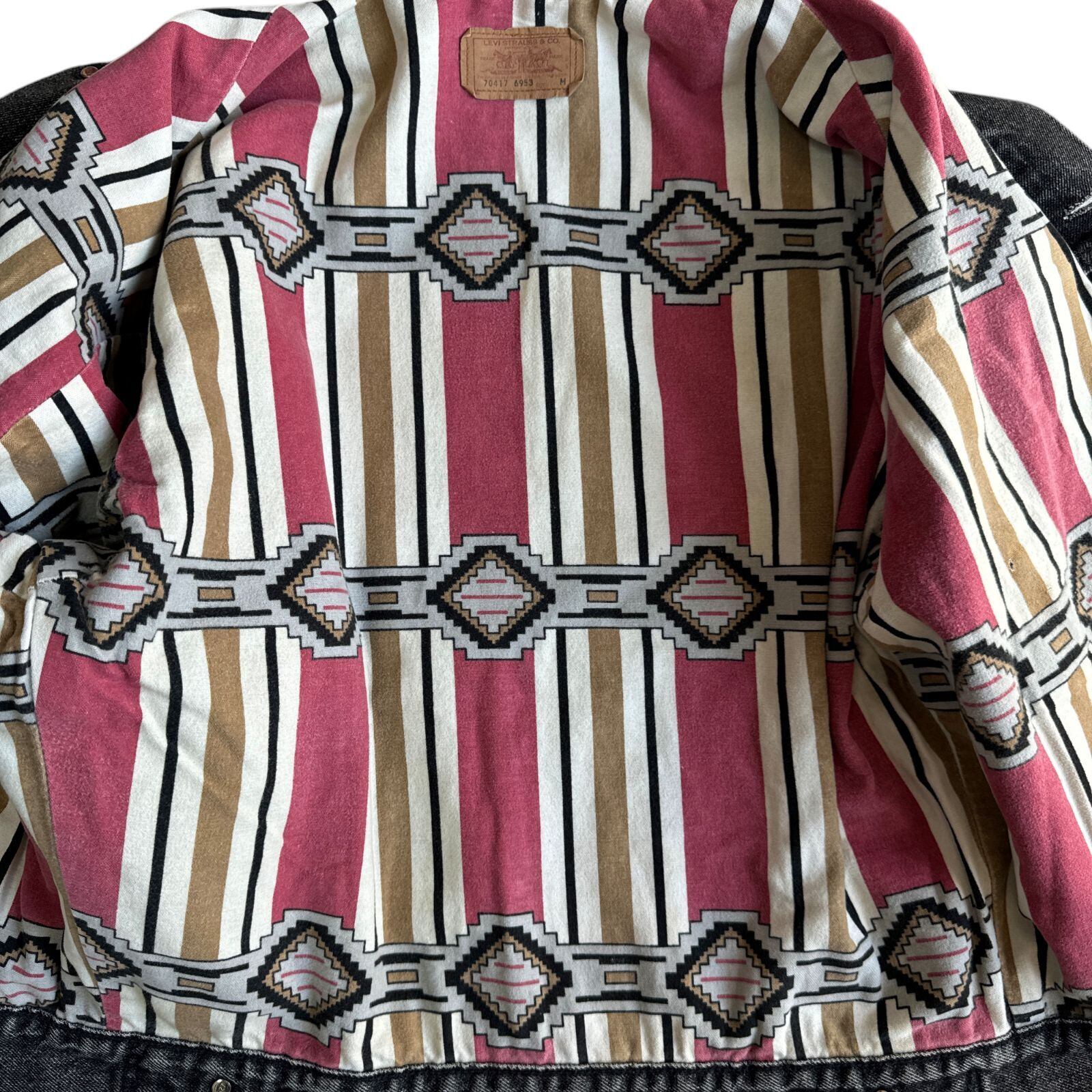 90s LEVI'S 70417 6953 ブラック デニムジャケット ネルライナー ネイティブ柄 Mサイズ 先染め BLACK BLK Gジャン リーバイス small e levis denim jacket vintage OLD ヴィンテージ