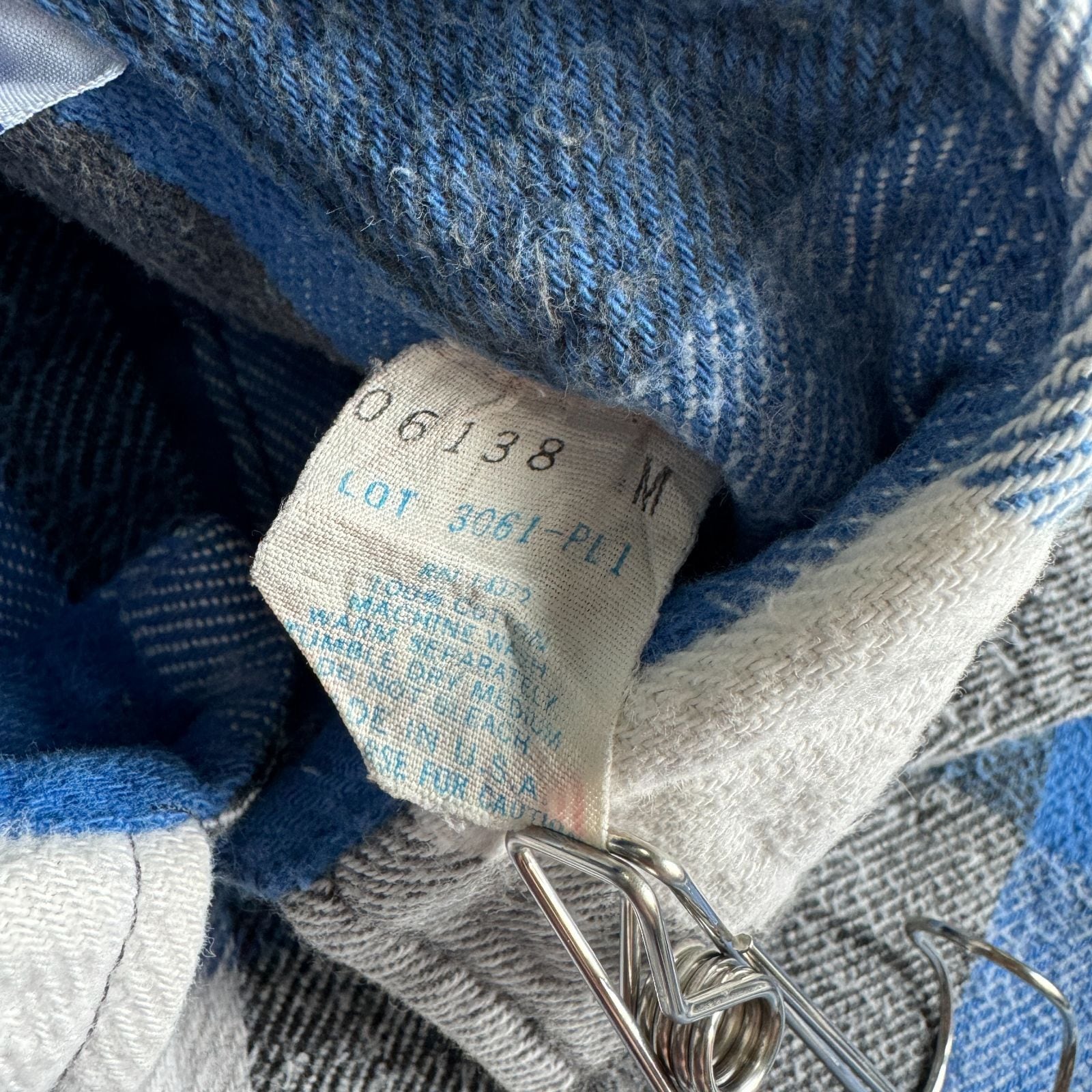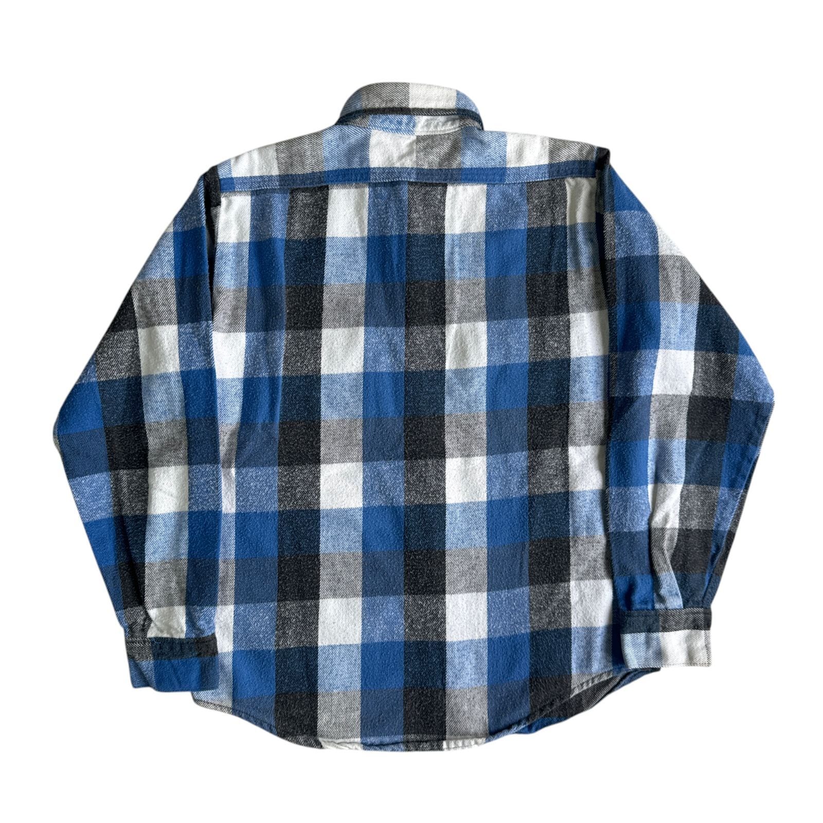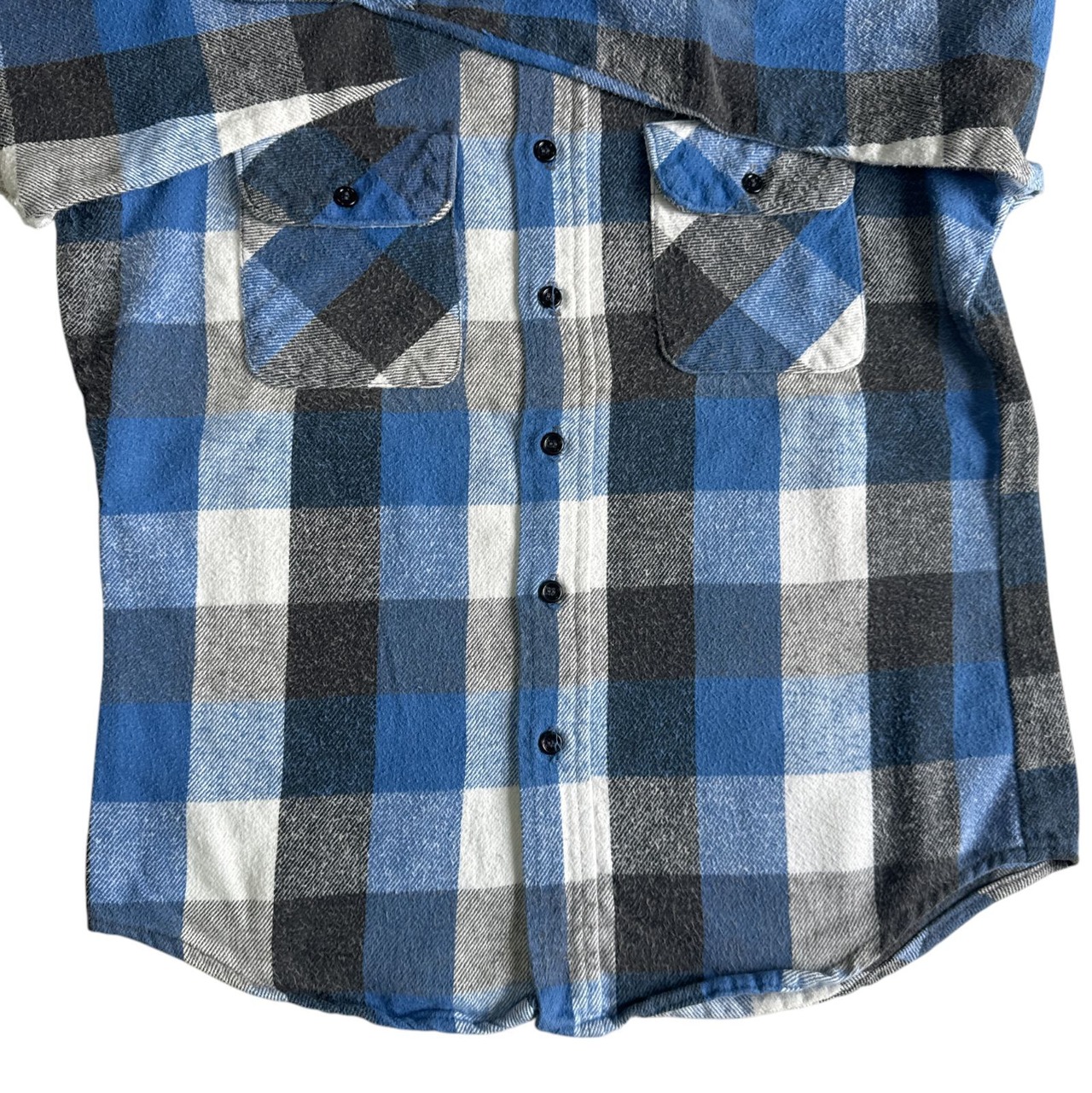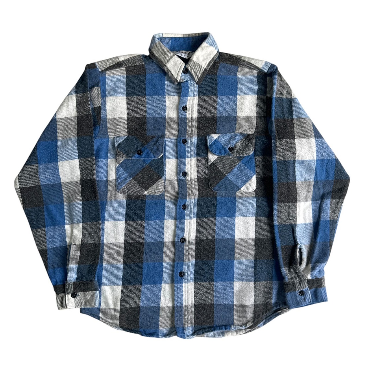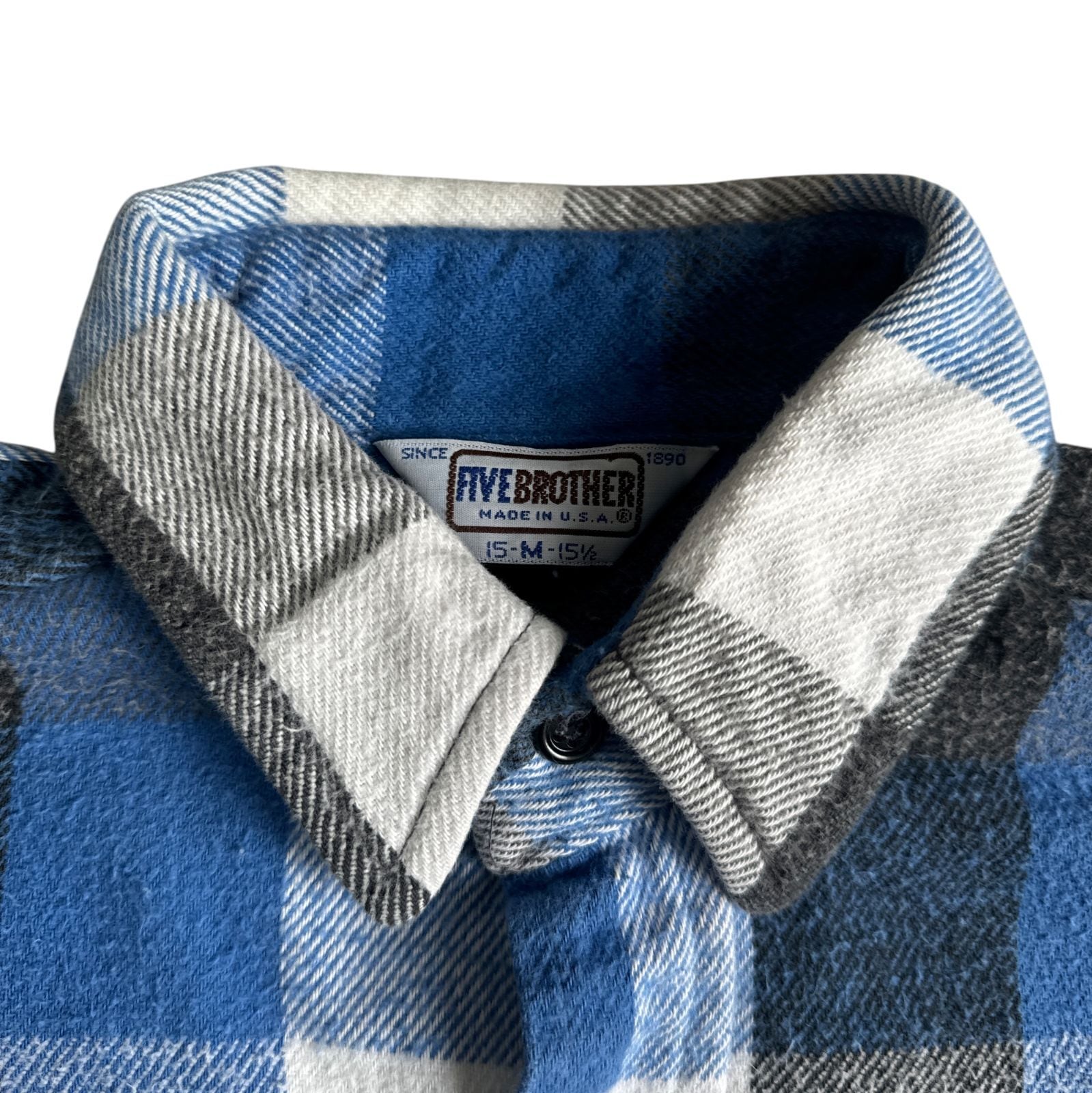 70s - 80s FIVE BROTHER ヘビーネルシャツ 青 白 黒 ブルー ブロックチェック Mサイズ ファイブブラザー チェックシャツ フランネル ヘビネル オンブレチェック Vintage ヴィンテージ ビンテージ Flannel Shirt