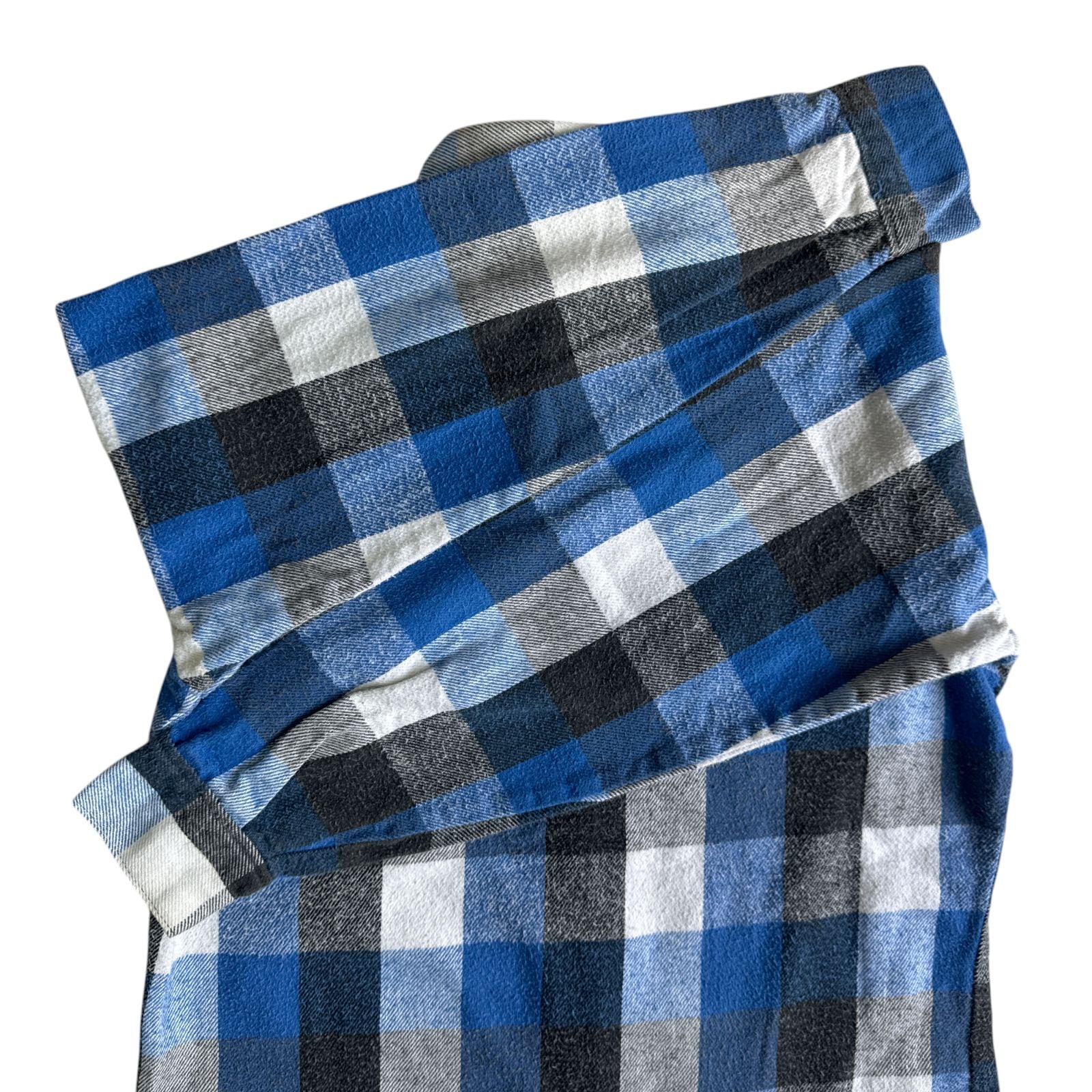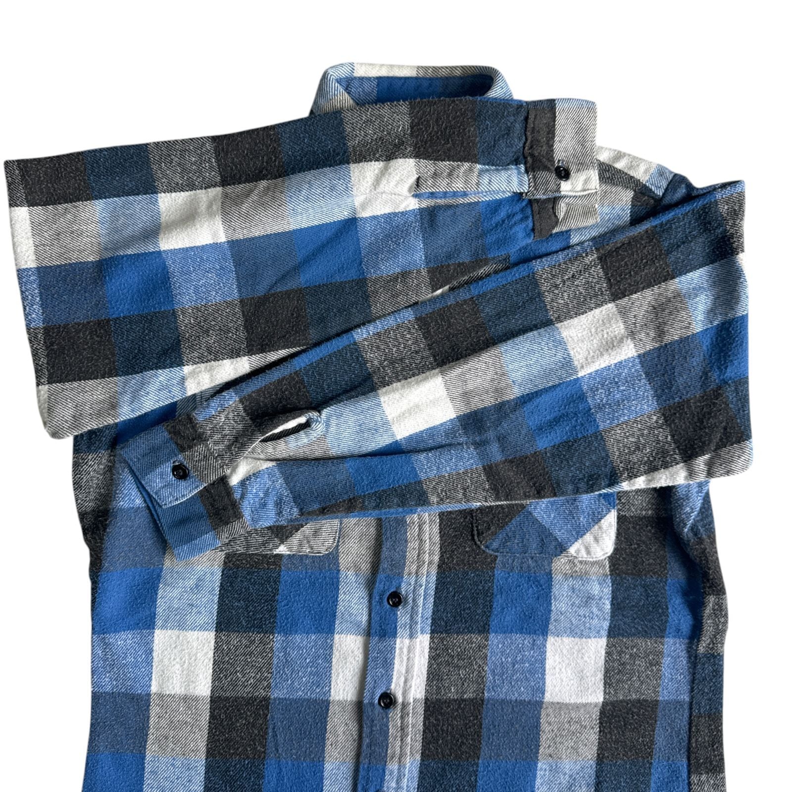 青白黒で構成されたブロックチェックのヘビーなネルシャツ。