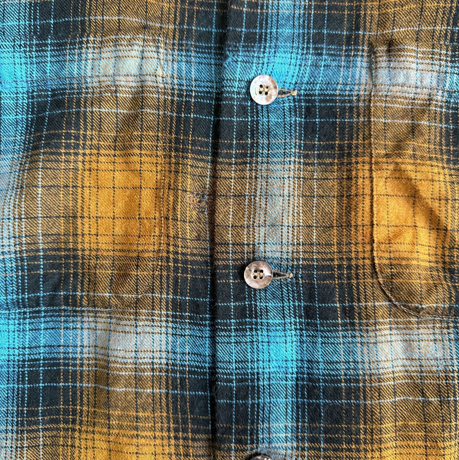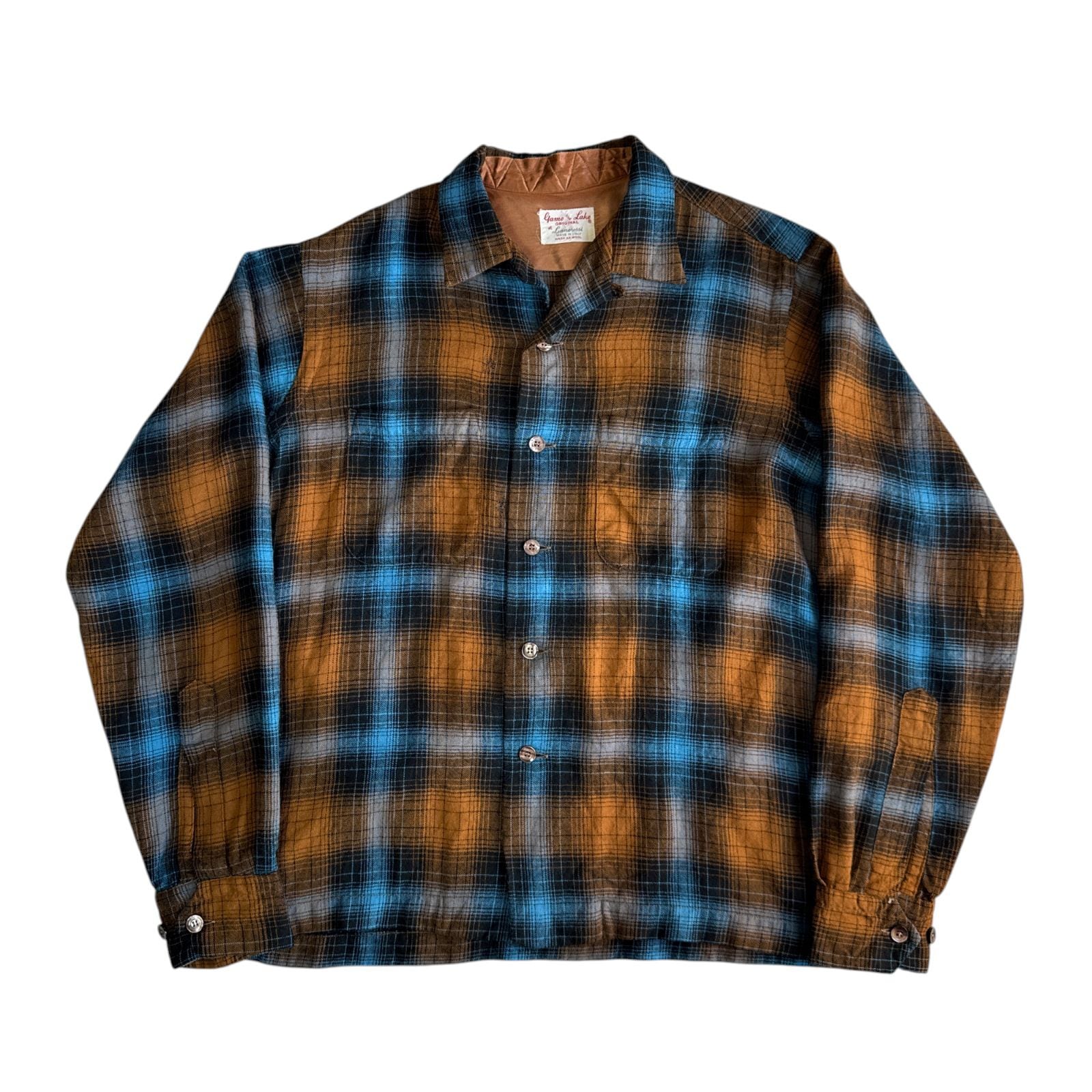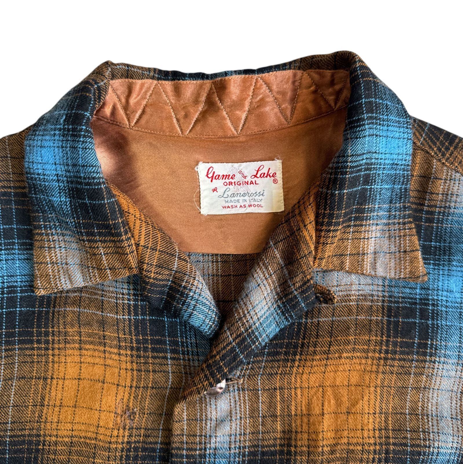 50s - 60s Game and Lake Lanerossi 開襟 ウールシャツ L-XLサイズ ブラウン ターコイズ オンブレチェック シャドーチェック オープンカラー Vintage Wool Check Shirt ヴィンテージ ビンテージ