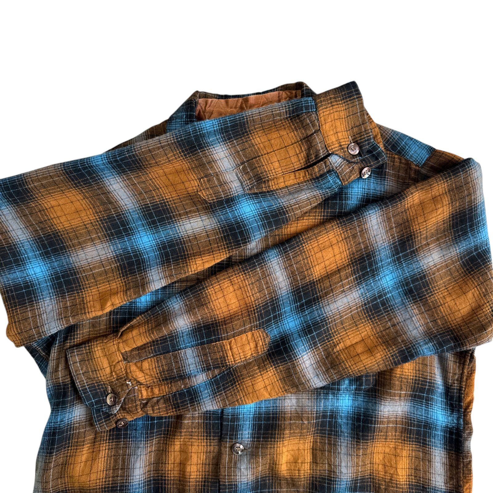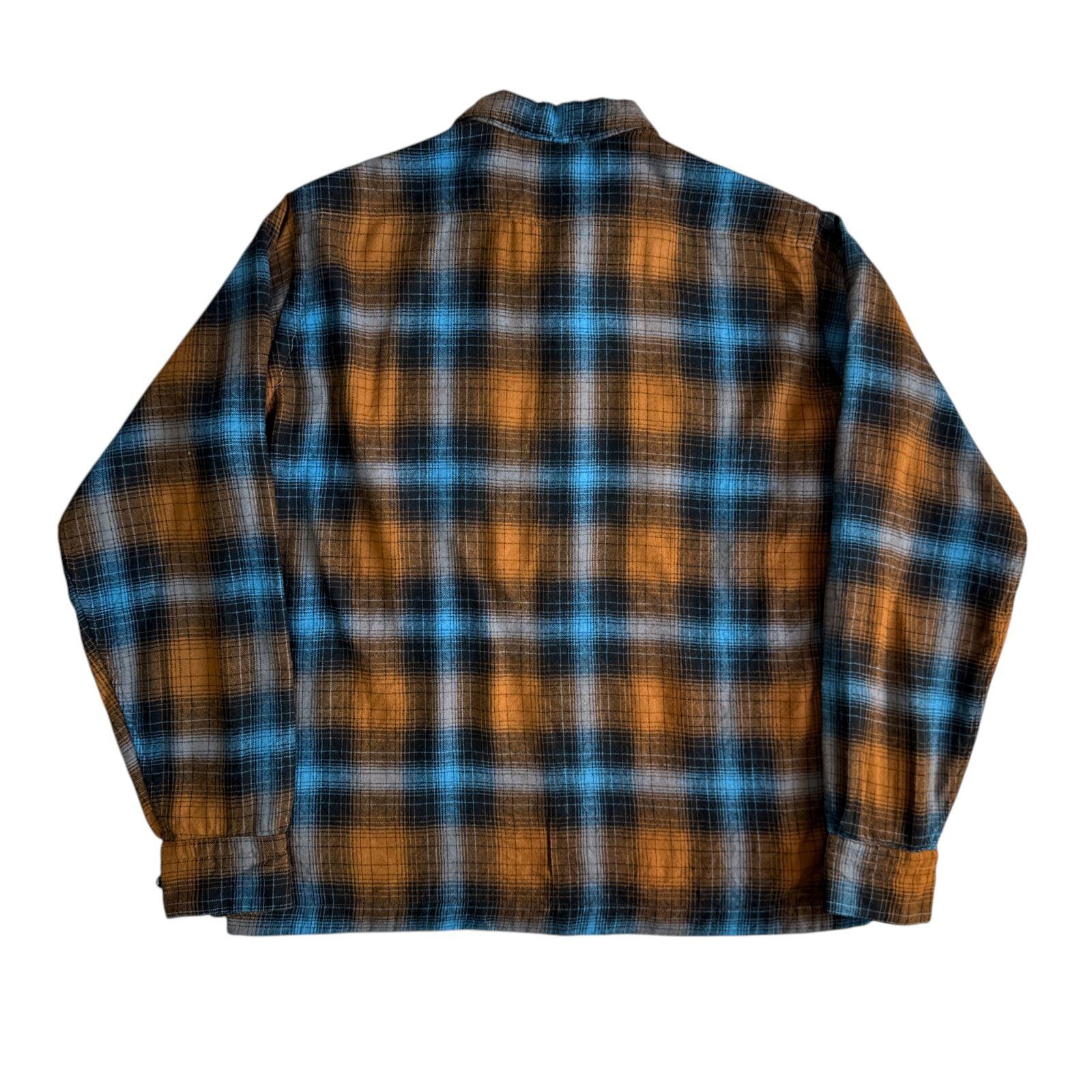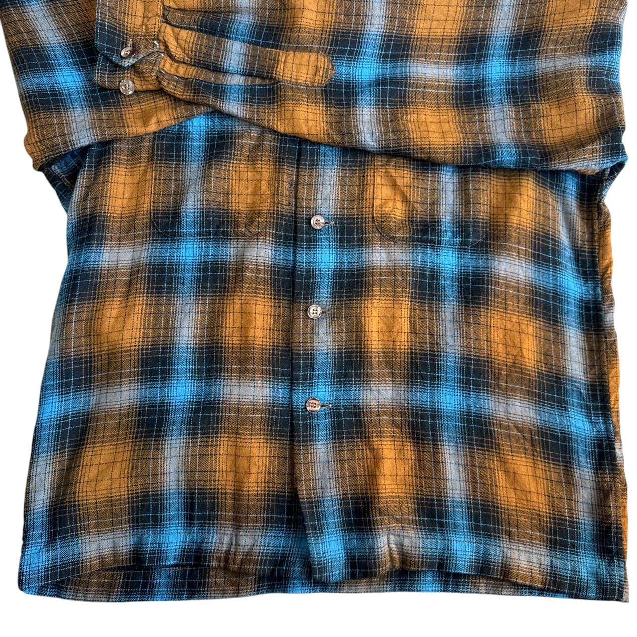 50s - 60s Game and Lake Lanerossi 開襟 ウールシャツ L-XLサイズ ブラウン ターコイズ オンブレチェック シャドーチェック オープンカラー Vintage Wool Check Shirt ヴィンテージ ビンテージ