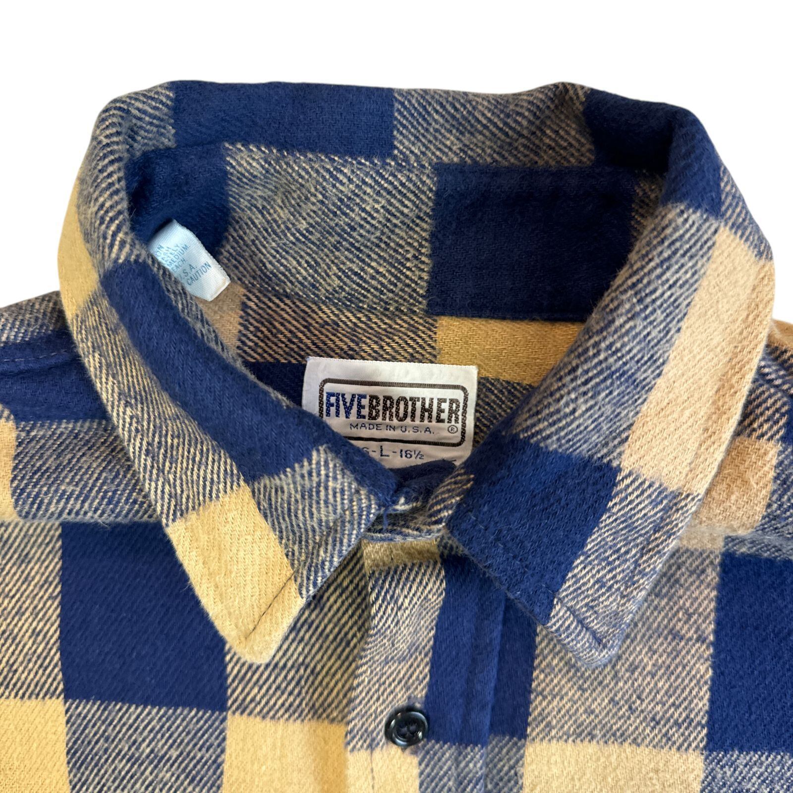 70s - 80s FIVE BROTHER ヘビーネルシャツ ネイビー ベージュ ブロックチェック Lサイズ ファイブブラザー チェックシャツ フランネル ヘビネル オンブレチェック Vintage ヴィンテージ ビンテージ Flannel Shirt