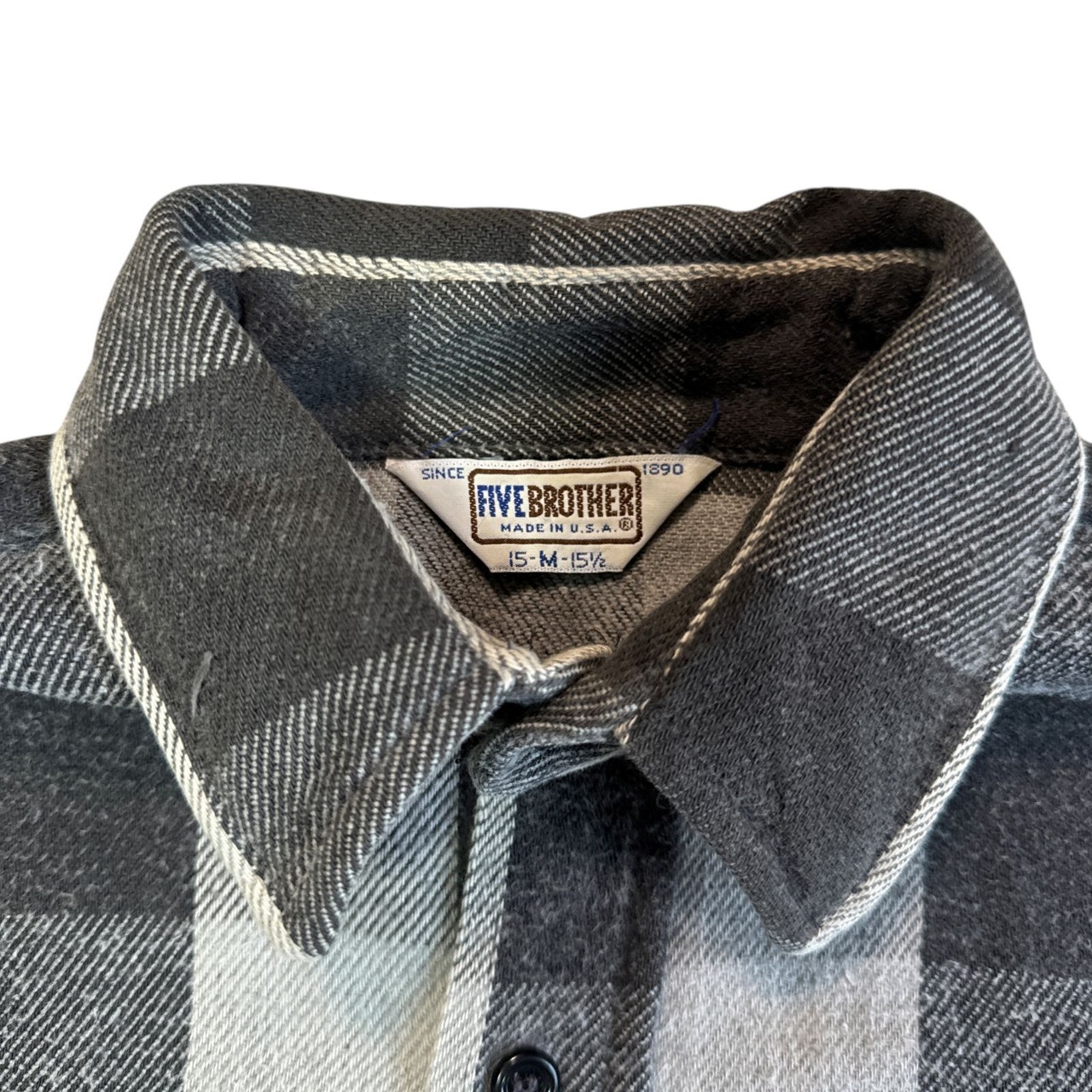 80s FIVE BROTHER ヘビーネルシャツ グレー ブラック 黒 灰 ブロックチェック Mサイズ ファイブブラザー チェックシャツ フランネル ヘビネル オンブレチェック Vintage ヴィンテージ ビンテージ Flannel Shirt