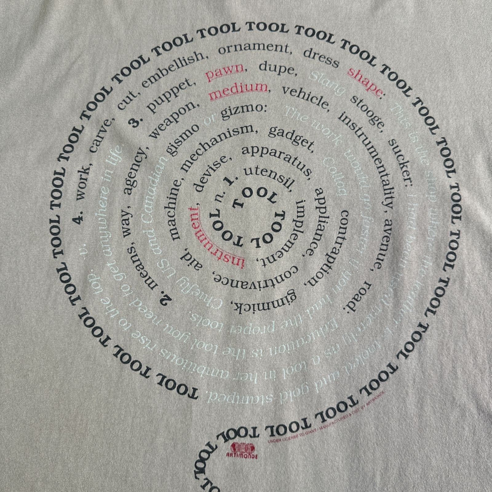 "TOOL"という単語の類義語を羅列したスパイラルパターン。バンTのスパイラルは格別にかっこいいと思っています。
