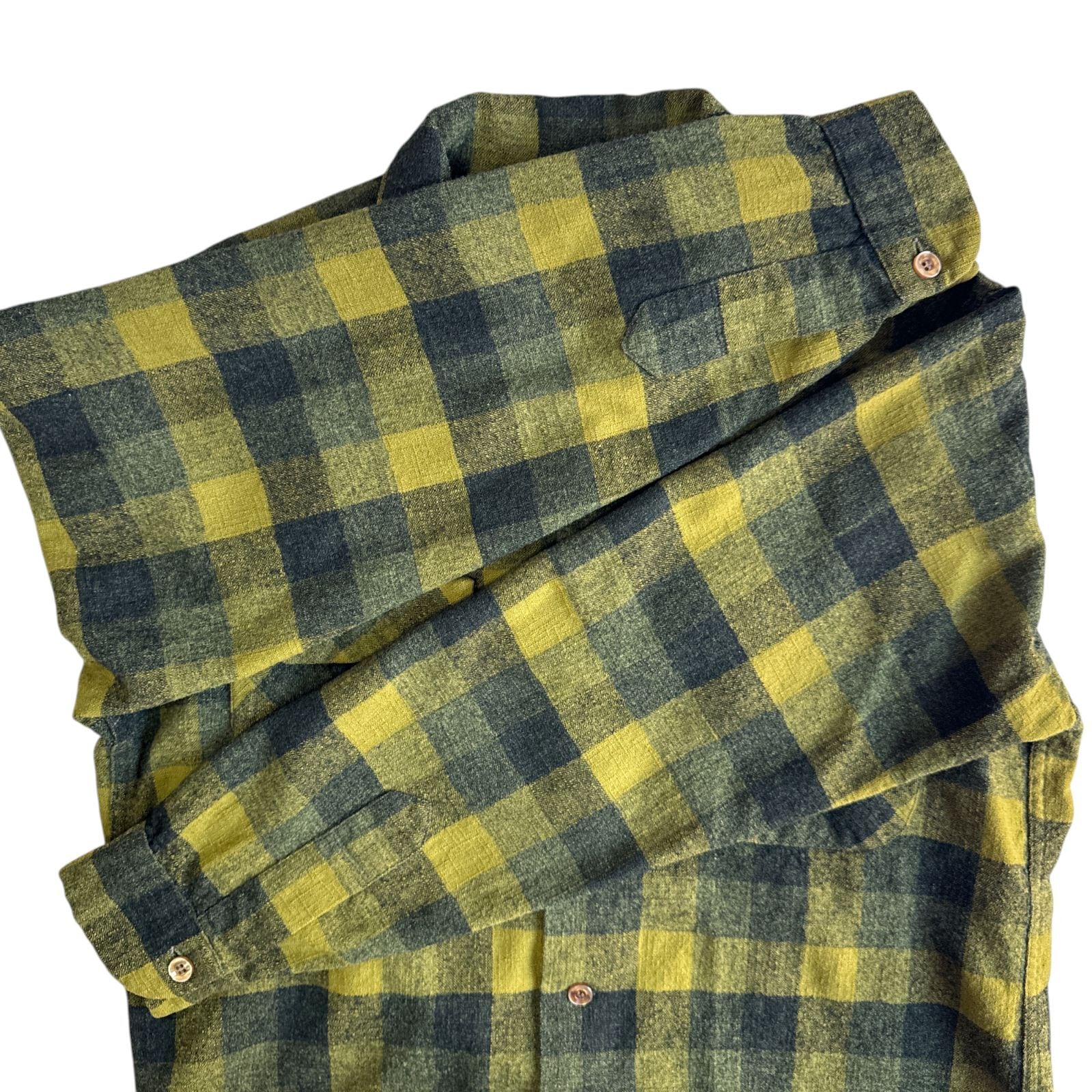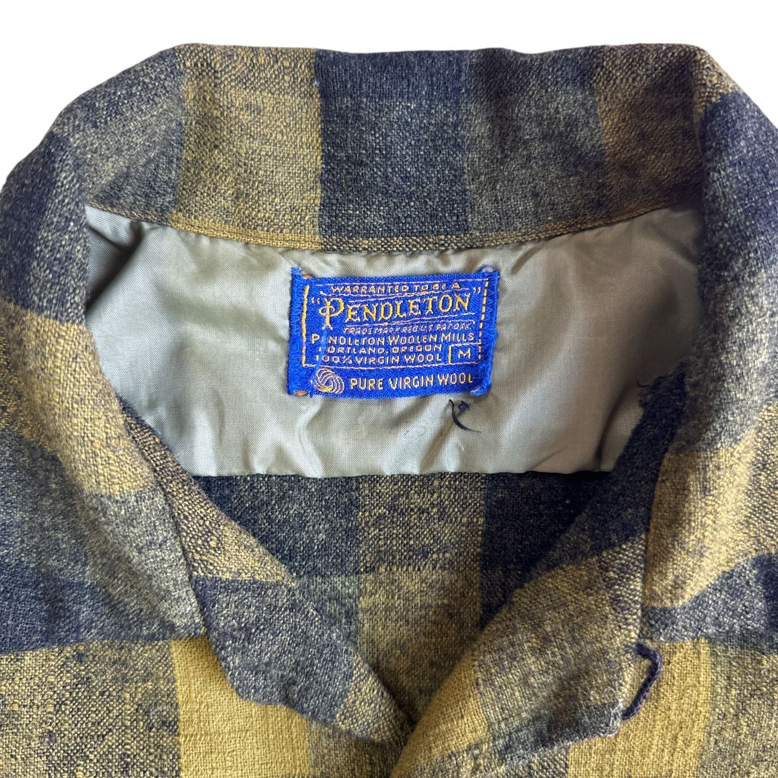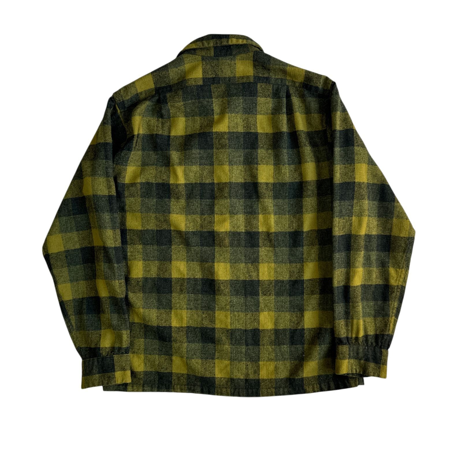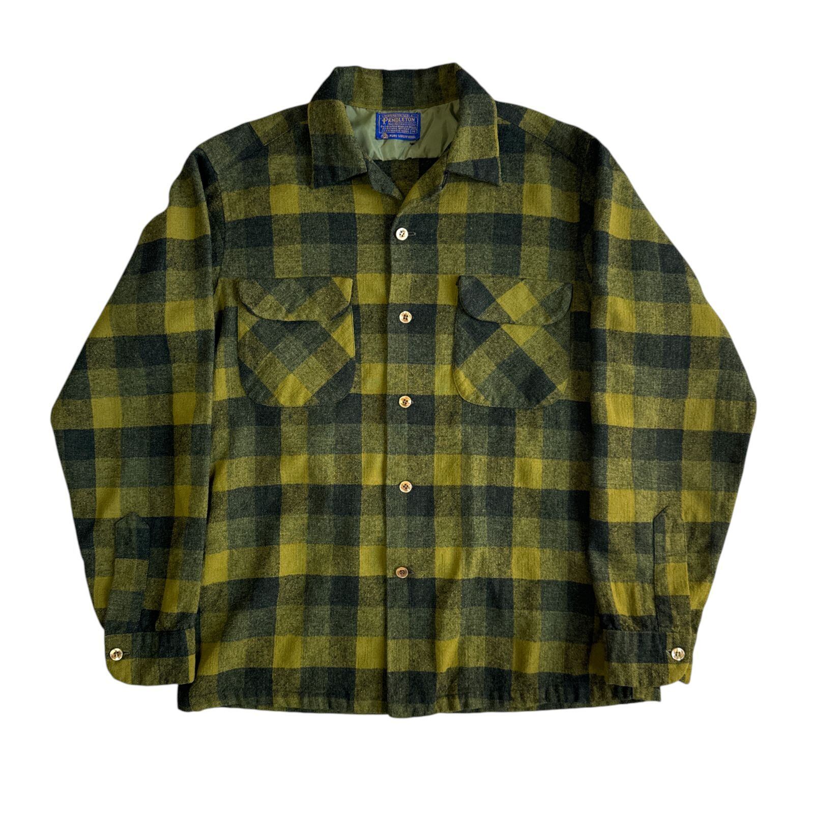 60s Pendleton ペンドルトン ボードシャツ BoardShirt Mサイズ イエロー カーキ ブロックチェック Vintage ヴィンテージ オープンカラー 開襟 70年代 60年代 ウールシャツ オンブレ シャドーチェック