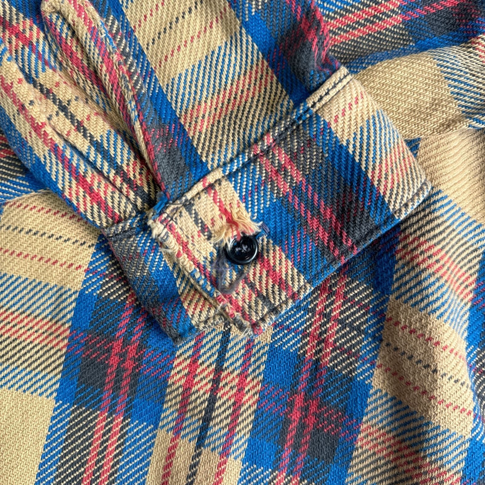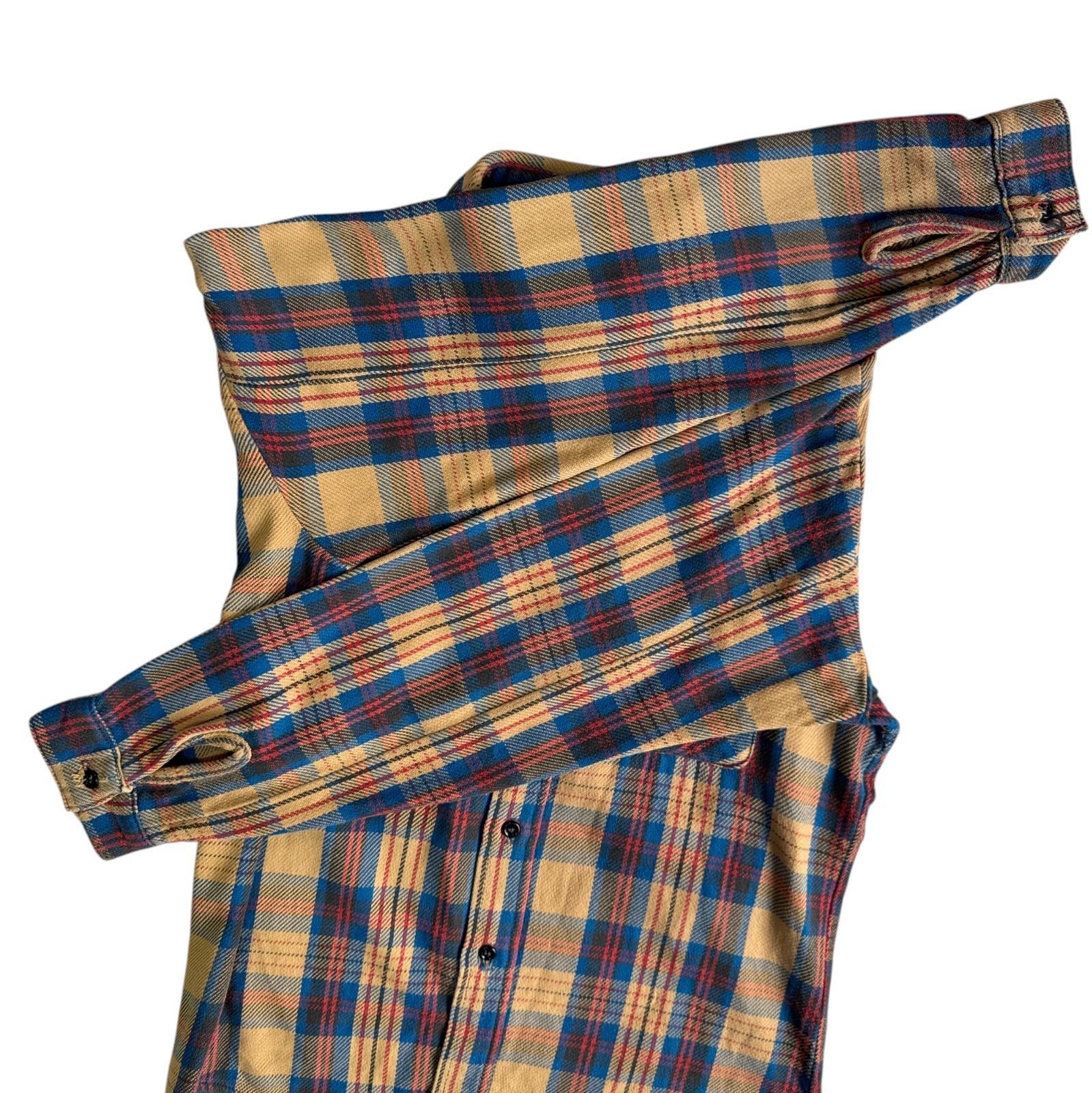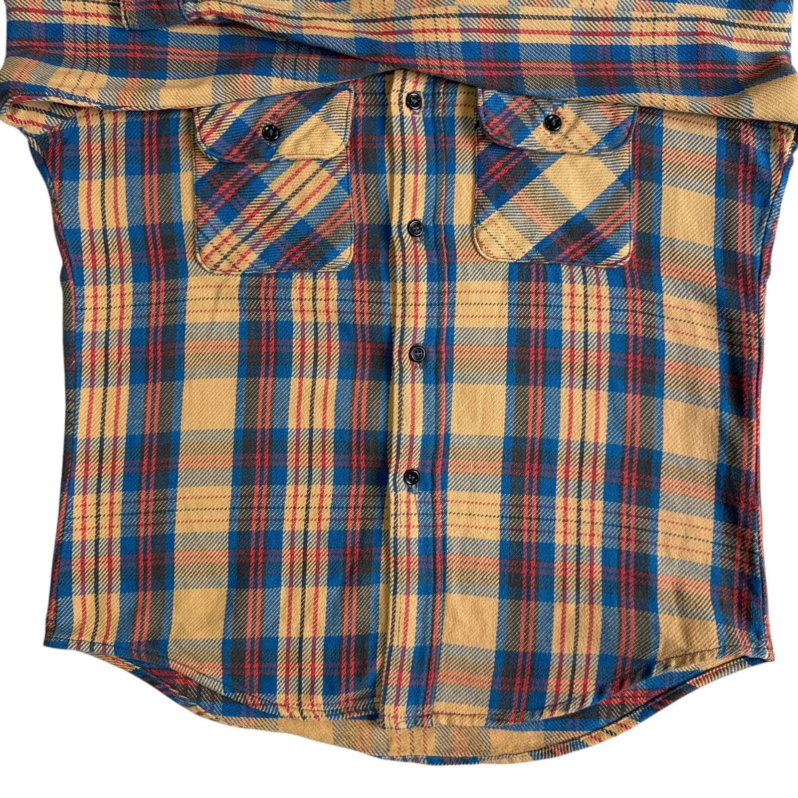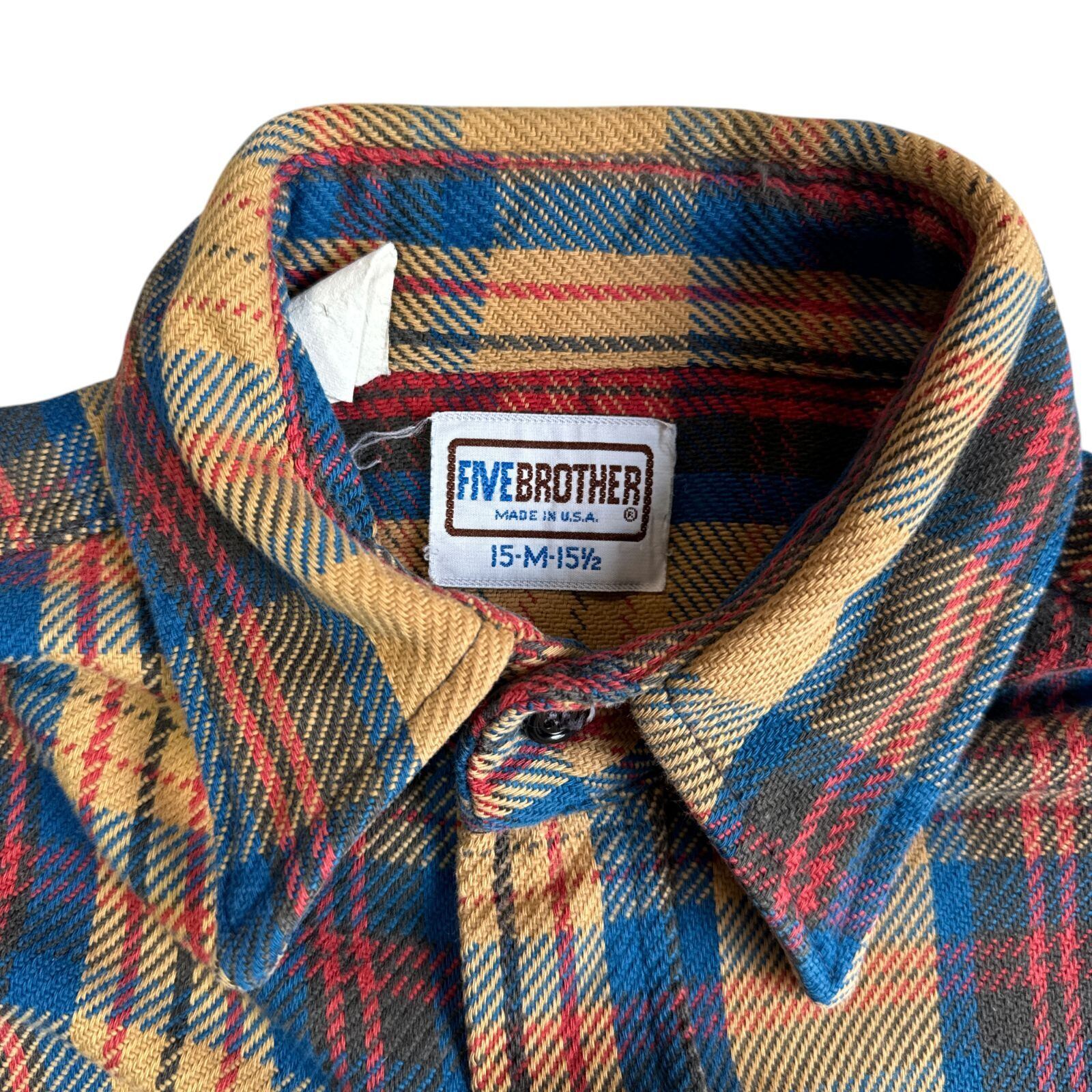 70s FIVE BROTHER ヘビーネルシャツ ベージュ ブルー マルチ チェック Mサイズ ファイブブラザー チェックシャツ フランネル ヘビネル オンブレチェック Vintage ヴィンテージ ビンテージ Flannel Shirt