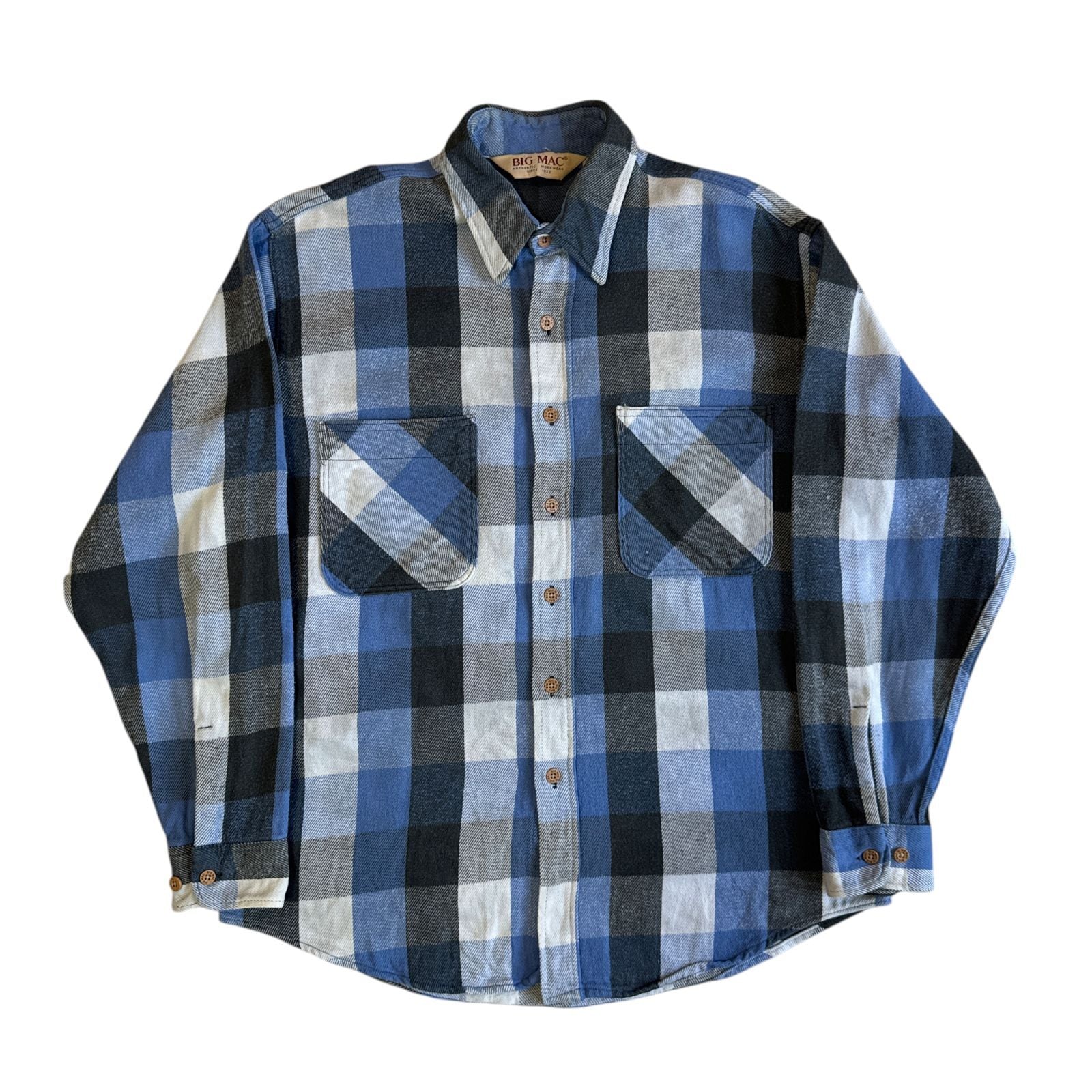 80s-90s BIG MAC ヘビーネルシャツ Lサイズ ブルー ブラック ホワイト ブロックチェック フランネル ヘビネル オンブレチェック ビッグマック JCPenny JCペニー Vintage ヴィンテージ ビンテージ