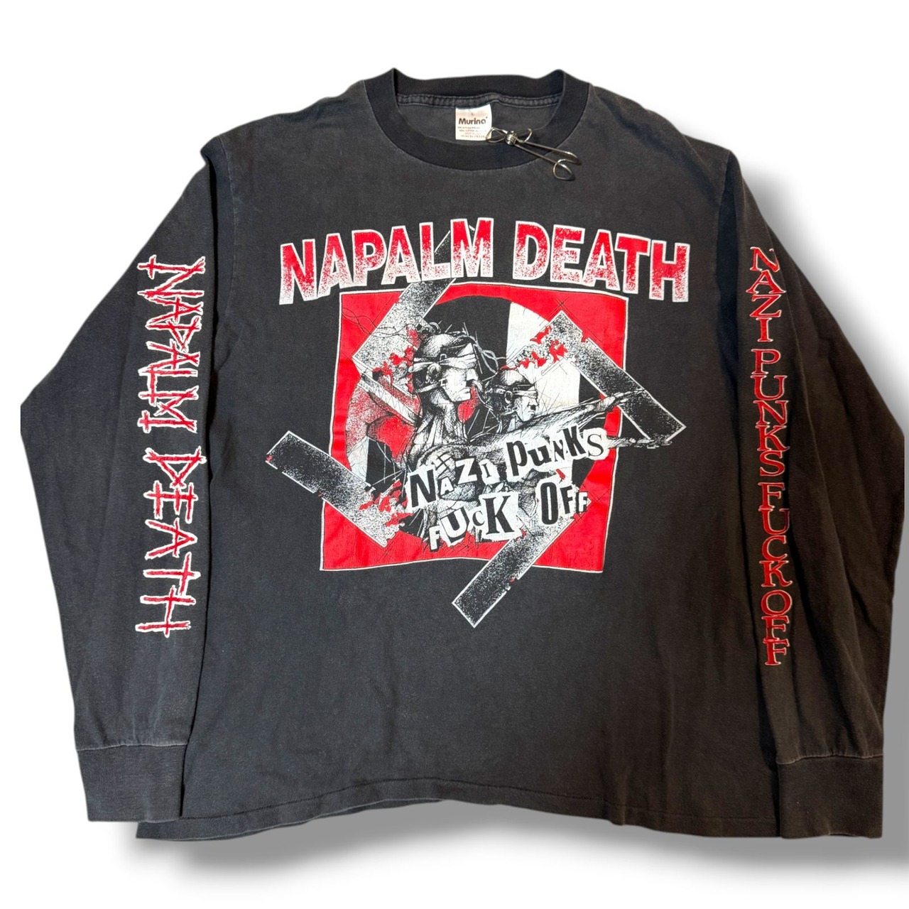 90s NAPALM DEATH NAZI PUNKS FUCK OFF バンドTシャツ Lサイズ 長袖Tシャツ 袖プリ