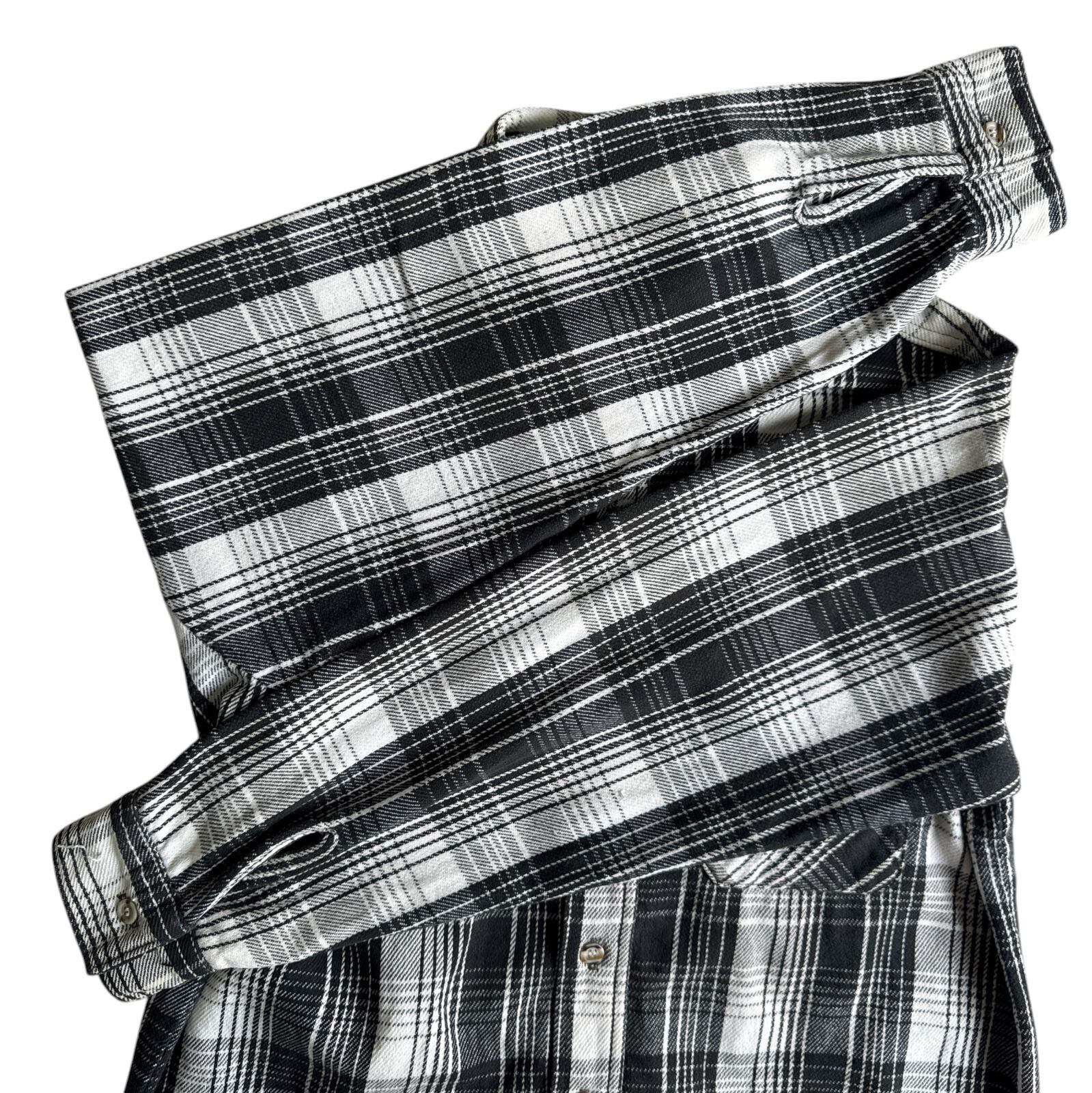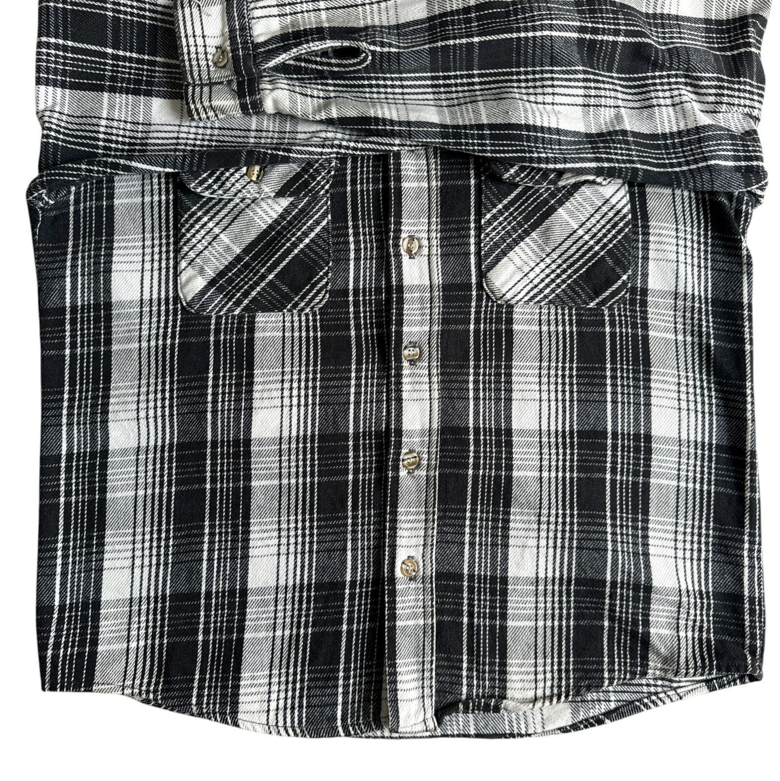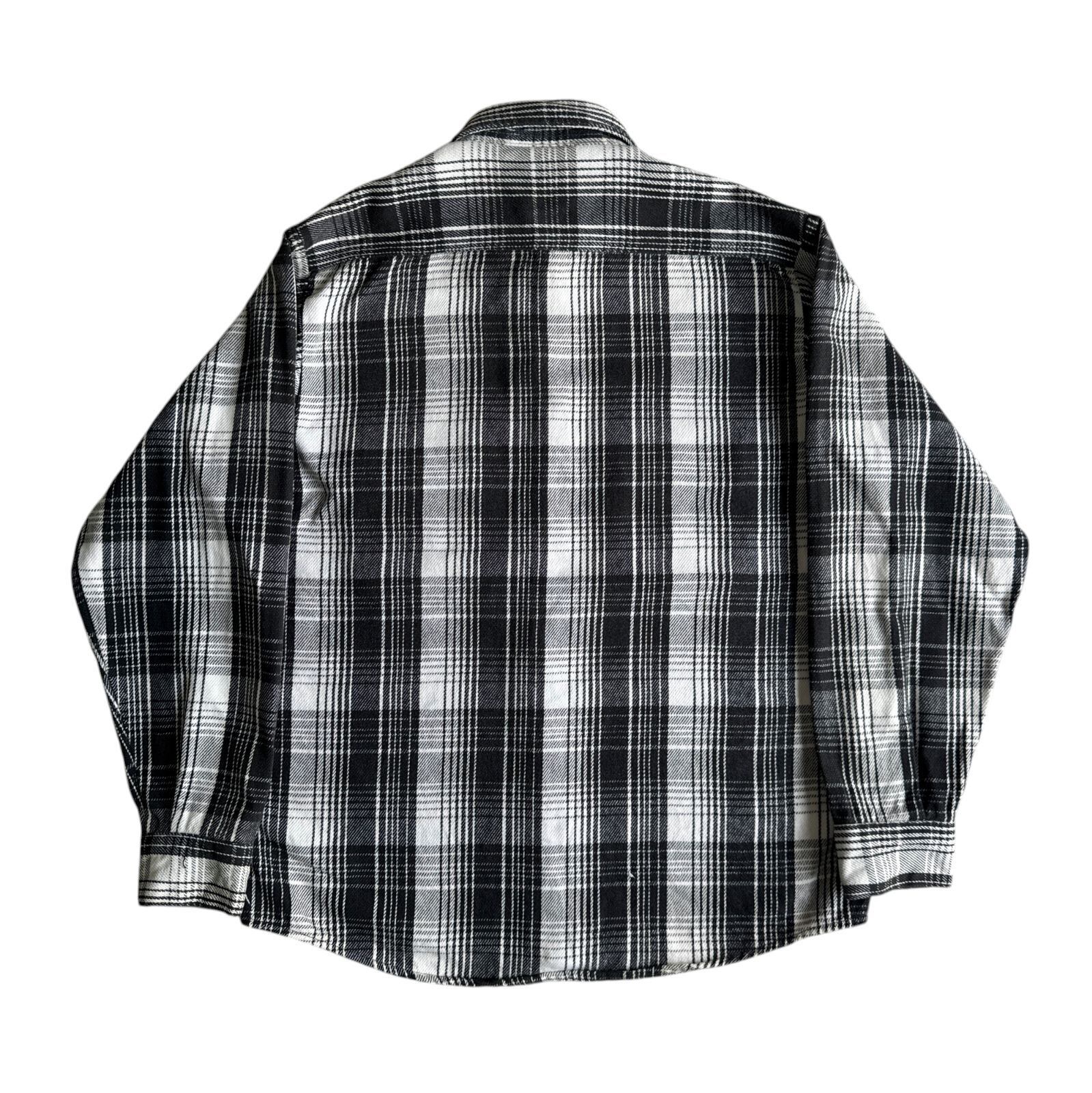90s FIVE BROTHER ヘビーネルシャツ グレー ブラック 黒 灰 チェック Mサイズ ファイブブラザー チェックシャツ フランネル ヘビネル オンブレチェック モノクロ Vintage ヴィンテージ ビンテージ Flannel Shirt