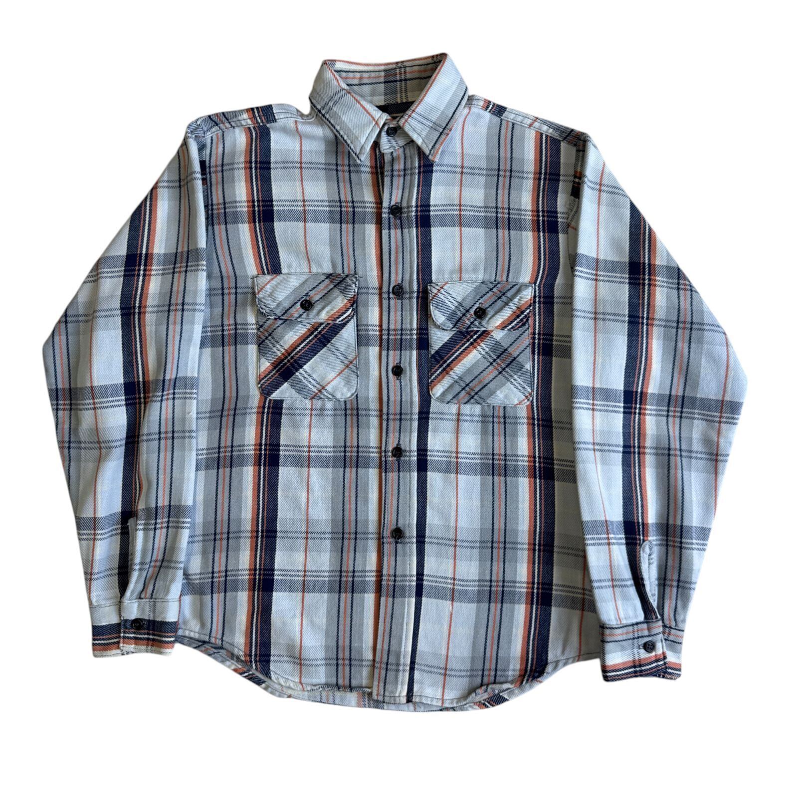 80s FIVE BROTHER ヘビーネルシャツ ライトブルー オレンジ 好配色 チェック Mサイズ ファイブブラザー チェックシャツ フランネル ヘビネル オンブレチェック Vintage ヴィンテージ ビンテージ Flannel Shirt