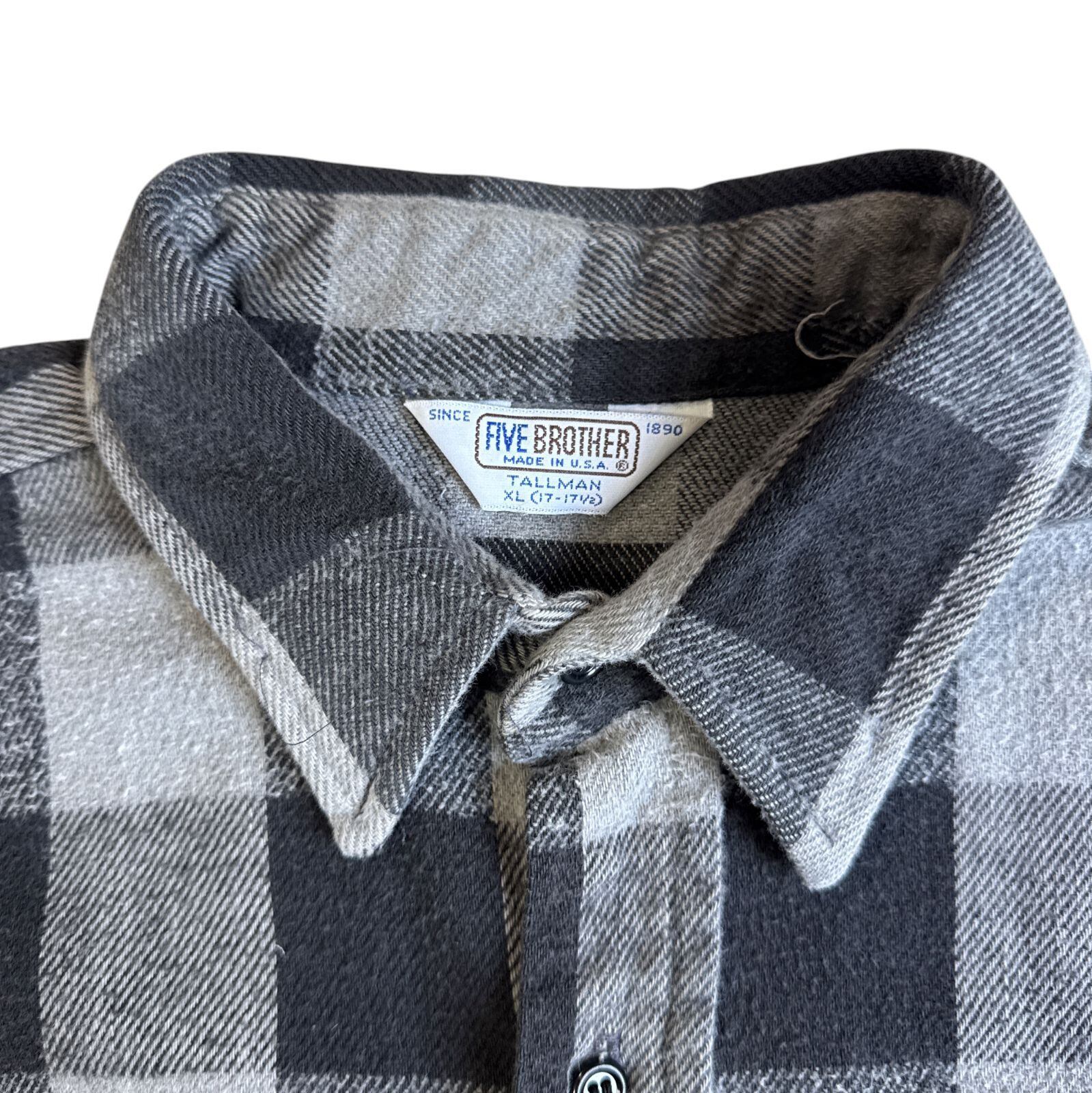 70s-80s FIVE BROTHER ヘビーネルシャツ グレー ブラック 黒 灰 ブロックチェック XLサイズ ファイブブラザー チェックシャツ フランネル ヘビネル オンブレチェック Vintage ヴィンテージ ビンテージ Flannel Shirt