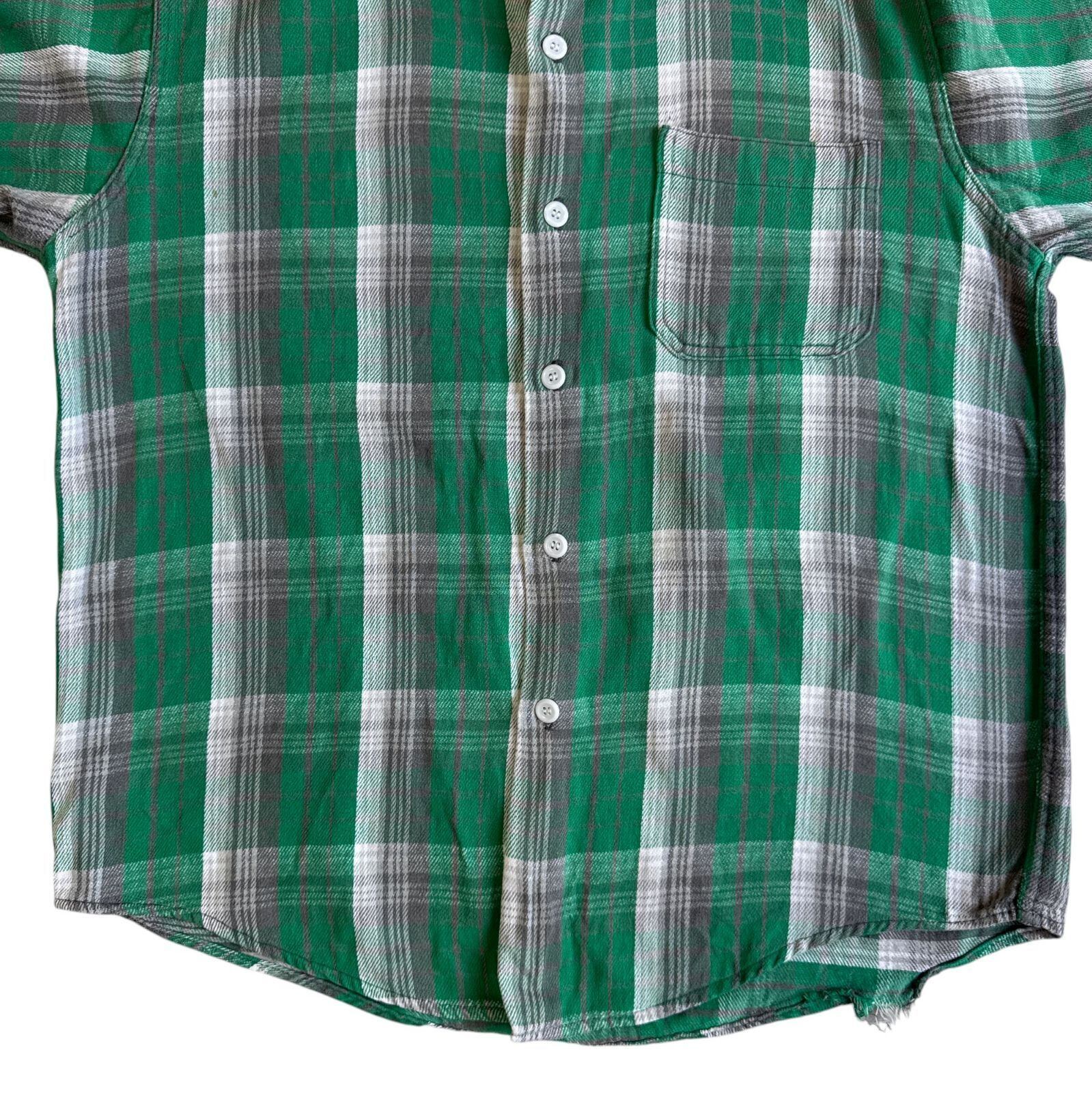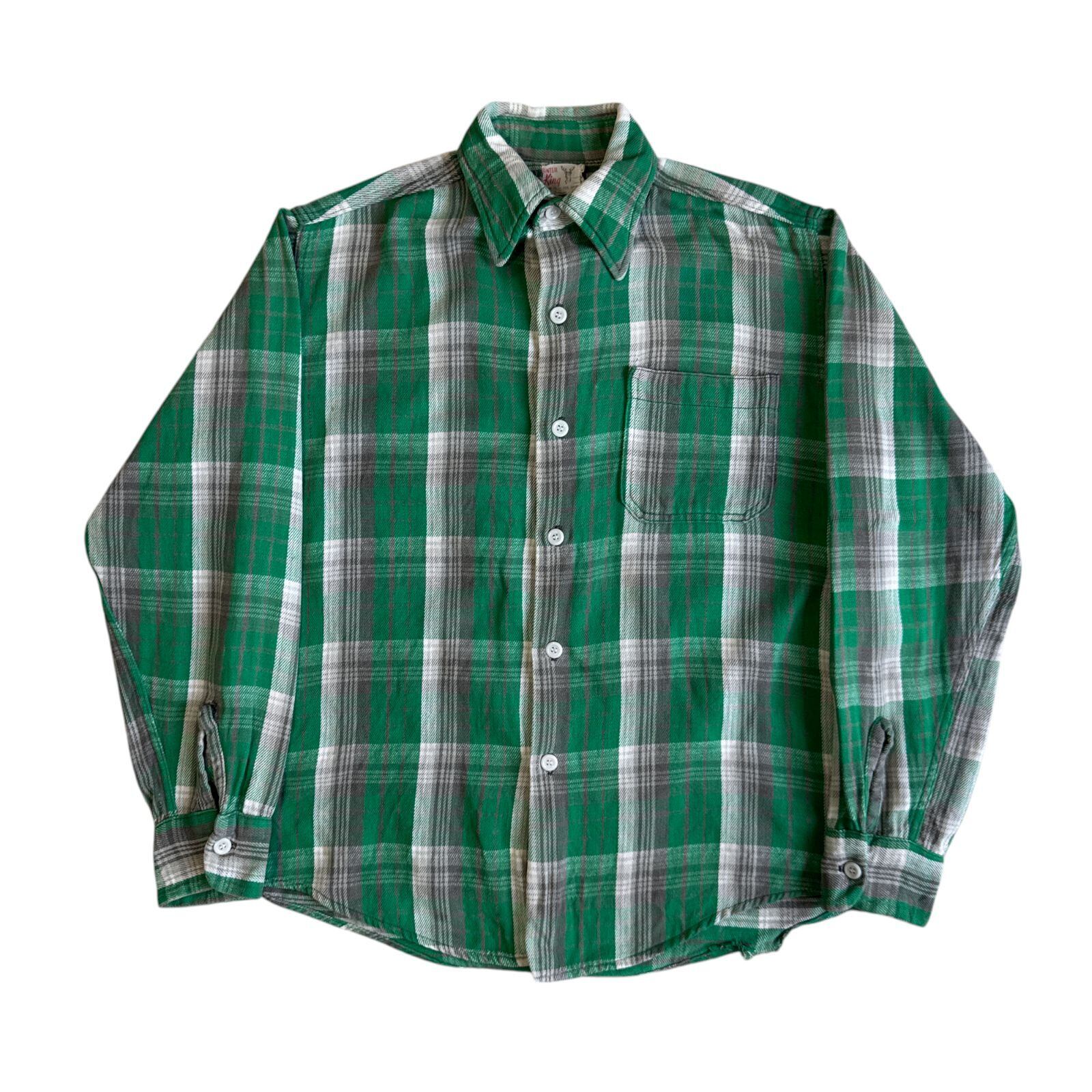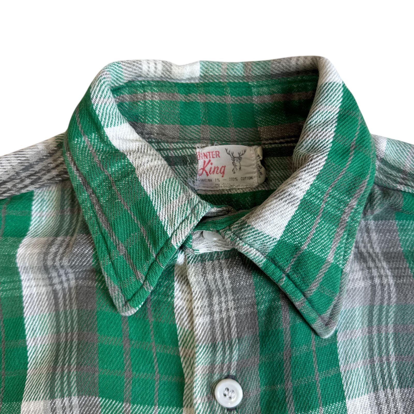 60s WINTER KING ヘビーネルシャツ グリーン グレー ホワイト シャドーチェック Fits Lサイズ ウィンターキング チェックシャツ フランネル ヘビネル オンブレチェック Vintage ヴィンテージ ビンテージ Flannel Shirt