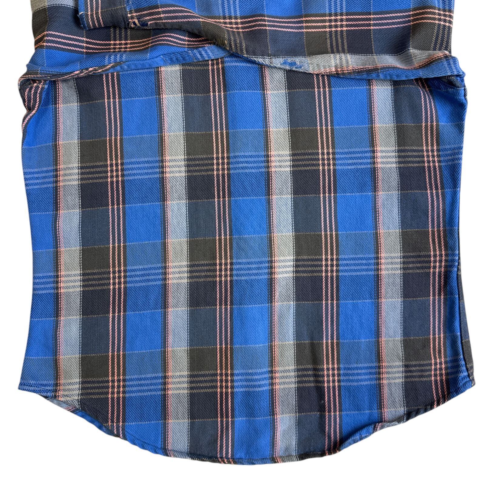 全体的にネルシャツ特有の使用感があります。袖にたたきリペアあり。袖のステッチに沿ったあたりが出ています。